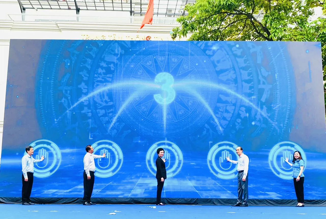 Các đại biểu thực hiện nghi thức khai mạc Ngày hội tư vấn và GDVL quận Hoàn Kiếm năm 2025. Ảnh: Nguyễn Hải