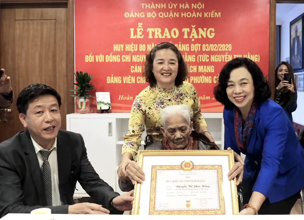 Trao tặng Huy hiệu 80 năm tuổi đảng sớm cho đảng viên lão thành Nguyễn Thị Phúc Hằng nhân dịp kỷ niệm 90 năm Ngày thành lập Đảng, Phó Bí thư Thường trực Thành ủy Hà Nội Ngô Thị Thanh Hằng bày tỏ sự trân trọng với những đóng góp công sức và trí tuệ của bà trong các giai đoạn cách mạng Việt Nam. Bà là người sớm giác ngộ tham gia hoạt động cách mạng, trải qua nhiều cương vị công tác; luôn là người đảng viên kiên trung, mẫu mực, hoàn thành xuất sắc mọi nhiệm vụ.