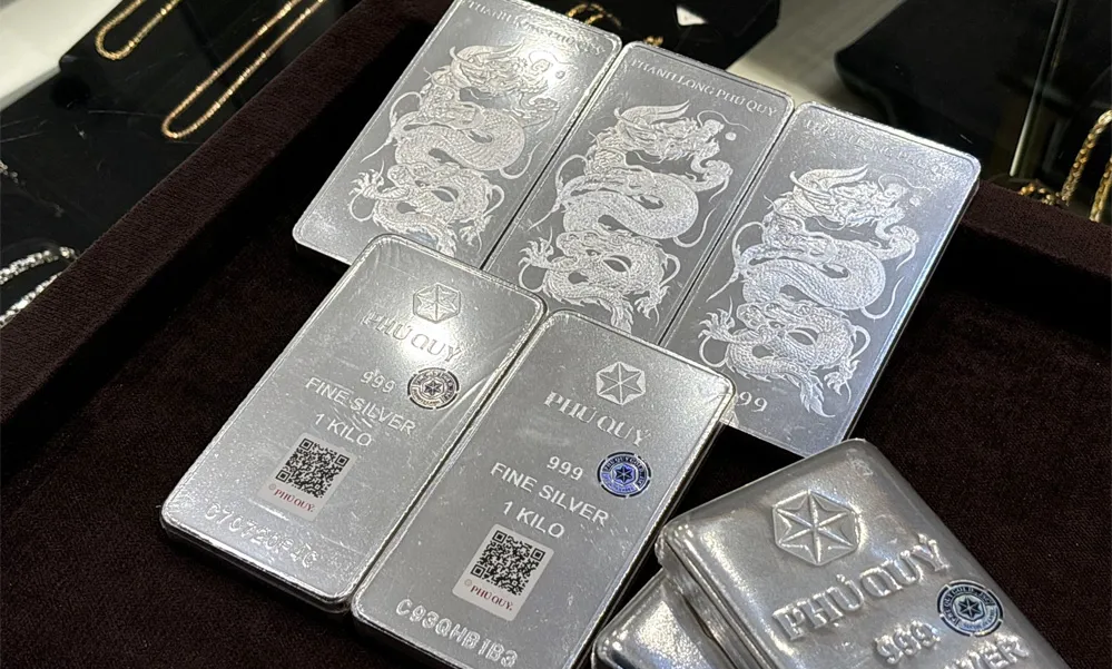 Đối với bạc Phú Quý loại 1kg, giá mua vào ở mức 54,773 triệu đồng/kg, bán ra ở mức 56,479 triệu đồng/kg. Bạc Phú Quý loại 1kg tăng 1,867 triệu đồng/kg ở chiều mua vào, còn chiều bán ra tăng 1,946 triệu đồng/kg so với phiên trước đó.