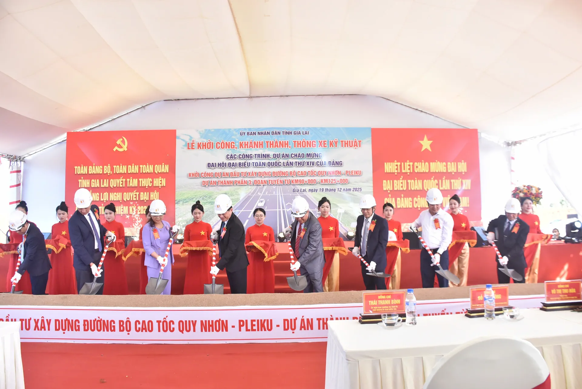 Kinhtedothi - Ngày 19/12, tại nhiều xã, phường trên địa bàn tỉnh Gia Lai đã diễn ra lễ khởi công và khánh thành 10 dự án quy mô lớn, với tổng mức đầu tư hơn 60 nghìn tỷ đồng. Đây là một trong những hoạt động thiết thực chào mừng Đại hội đại biểu toàn quốc lần thứ XIV của Đảng.