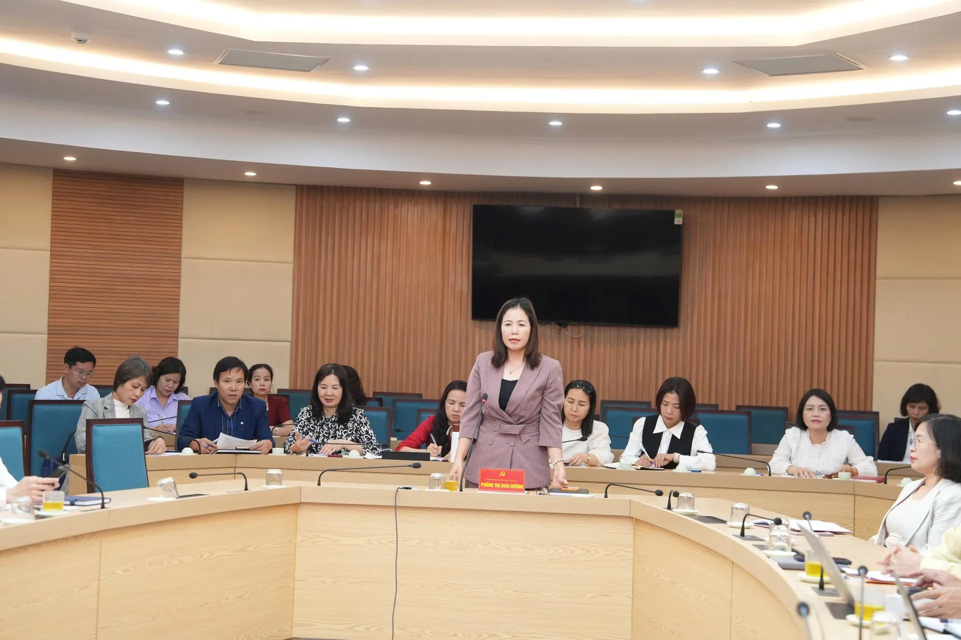 Phó Bí thư Thường trực Đảng ủy xã Gia Lâm Phùng Thị Hoài Hương phát biểu tại hội nghị.