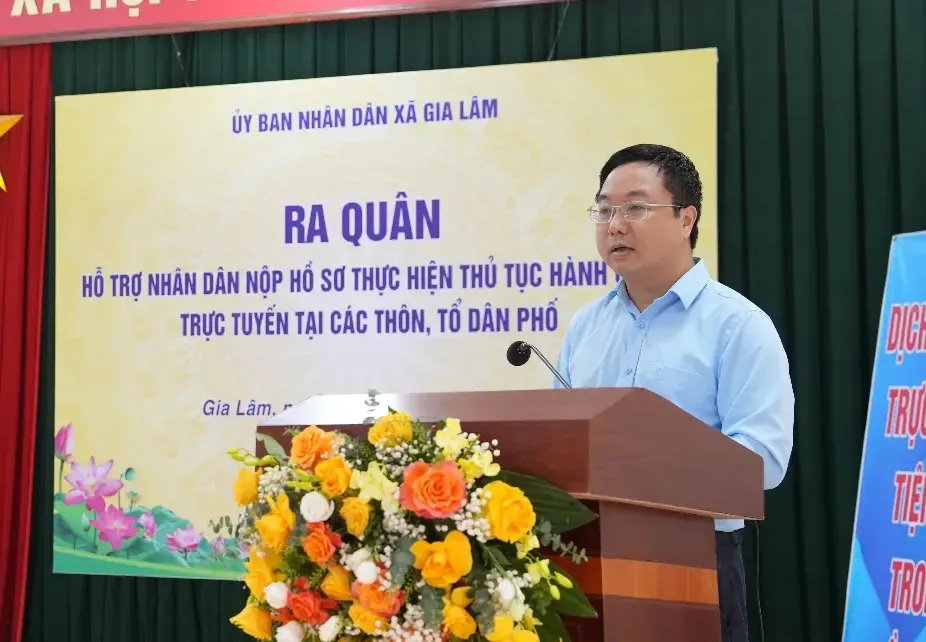 Phát biểu tại buổi lễ, Phó Chủ tịch UBND xã Gia Lâm Nguyễn Ngọc Dũng nhấn mạnh: Cải cách hành chính và chuyển đổi số là nhiệm vụ trọng tâm, xuyên suốt của hệ thống chính trị xã Gia Lâm. Để nâng cao hiệu quả thực chất, xã đã triển khai nhiều hoạt động thiết thực như tổ chức tập huấn theo hình thức “cầm tay chỉ việc”, hướng dẫn trực tiếp cán bộ, công chức và thành viên tổ chuyển đổi số cộng đồng thực hành nộp hồ sơ trực tuyến, đăng ký tài khoản dịch vụ công, thanh toán không dùng tiền mặt và hỗ trợ người dân thao tác trên các nền tảng số.