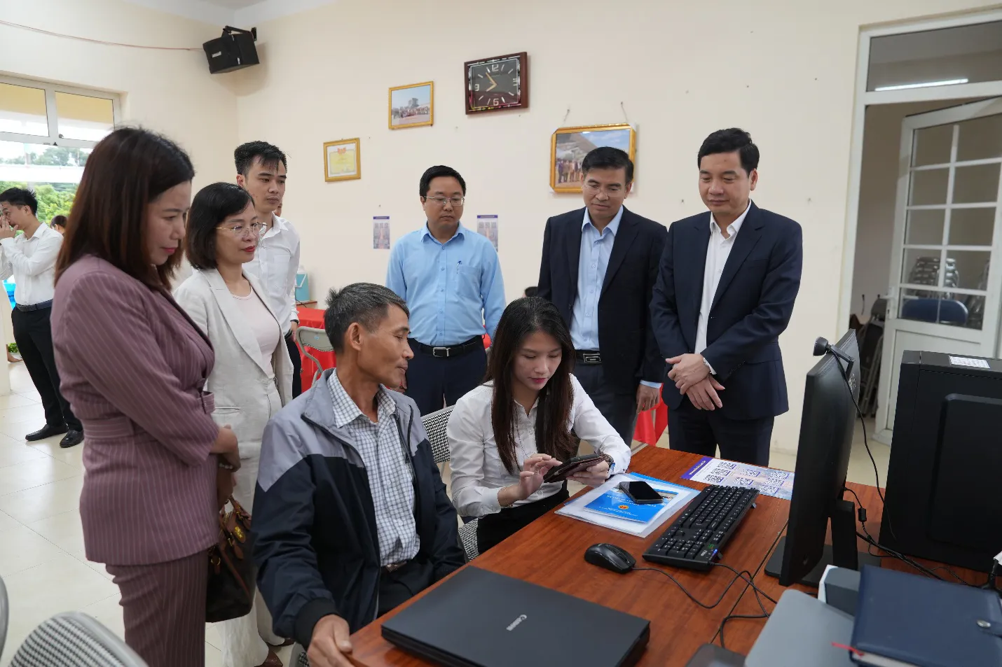Bên cạnh đó, xã cũng trang bị cho các thôn, tổ dân phố máy tính, máy in, máy scan để hỗ trợ người dân nộp hồ sơ điện tử thuận tiện hơn, nhất là trong các lĩnh vực phát sinh nhiều hồ sơ như chứng thực và bảo trợ xã hội. Việc tổ chức ra quân hỗ trợ người dân nộp hồ sơ thủ tục hành chính trực tuyến được xem là một bước cụ thể hóa quyết tâm đưa chính quyền gần dân hơn, giúp người dân tiếp cận và làm chủ công nghệ trong đời sống hằng ngày.