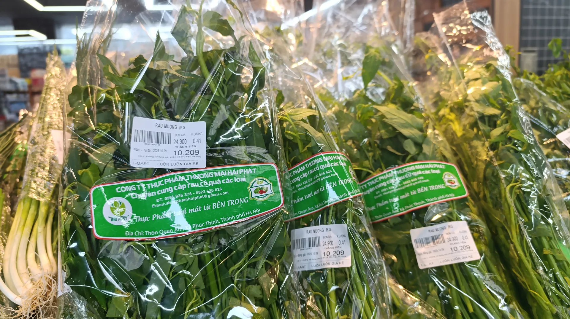 Trong khi đó, tại các siêu thị, giá rau tuy có tăng nhưng mức điều chỉnh nhẹ hơn, nhờ nguồn hàng được ký kết ổn định với các nhà cung ứng lớn. Tại siêu thị Tmart (khu đô thị Dương Nội, phường Dương Nội), rau ngót đang được bán 45.000 đồng/kg, cải thảo 17.000 đồng/kg, bầu 20.000 đồng/kg, mướp hương 25.000 đồng/kg, rau muống 25.000 đồng/kg, hành lá 50.000 đồng/kg. Một số loại rau tại siêu thị thậm chí rẻ hơn chợ dân sinh nhờ chương trình bình ổn giá.