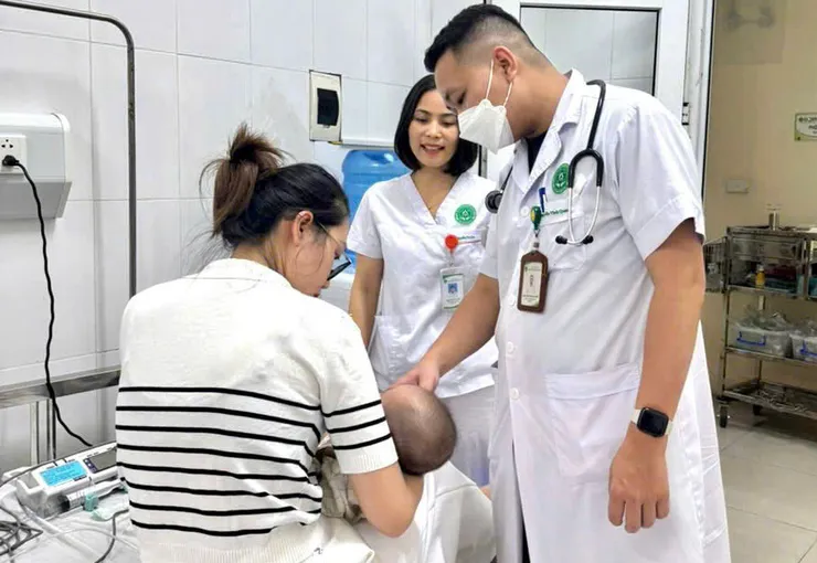 Bác sĩ BV Đa khoa Gia Lâm khám cho bệnh nhi.