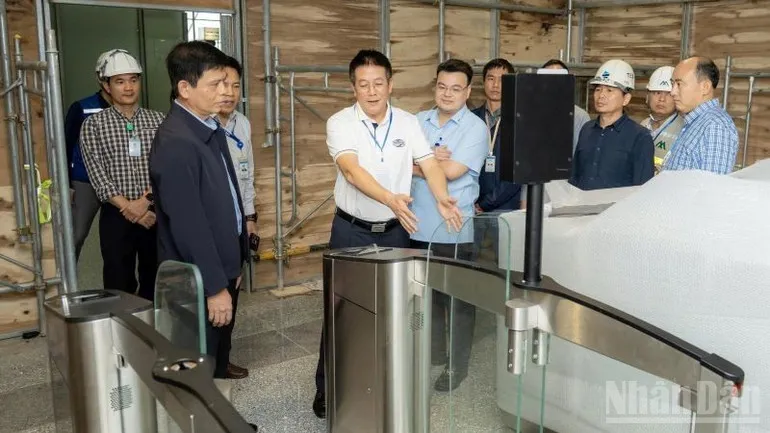 Lãnh đạo Bộ Xây dựng thị sát tiến độ triển khai và kiểm tra các điều kiện cần thiết trước khi đưa công trình, dự án mở rộng nhà ga hành khách T2, Cảng Hàng không quốc tế Nội Bài vào khai thác, sử dụng, ngày 12/11. Ảnh: Như Hà