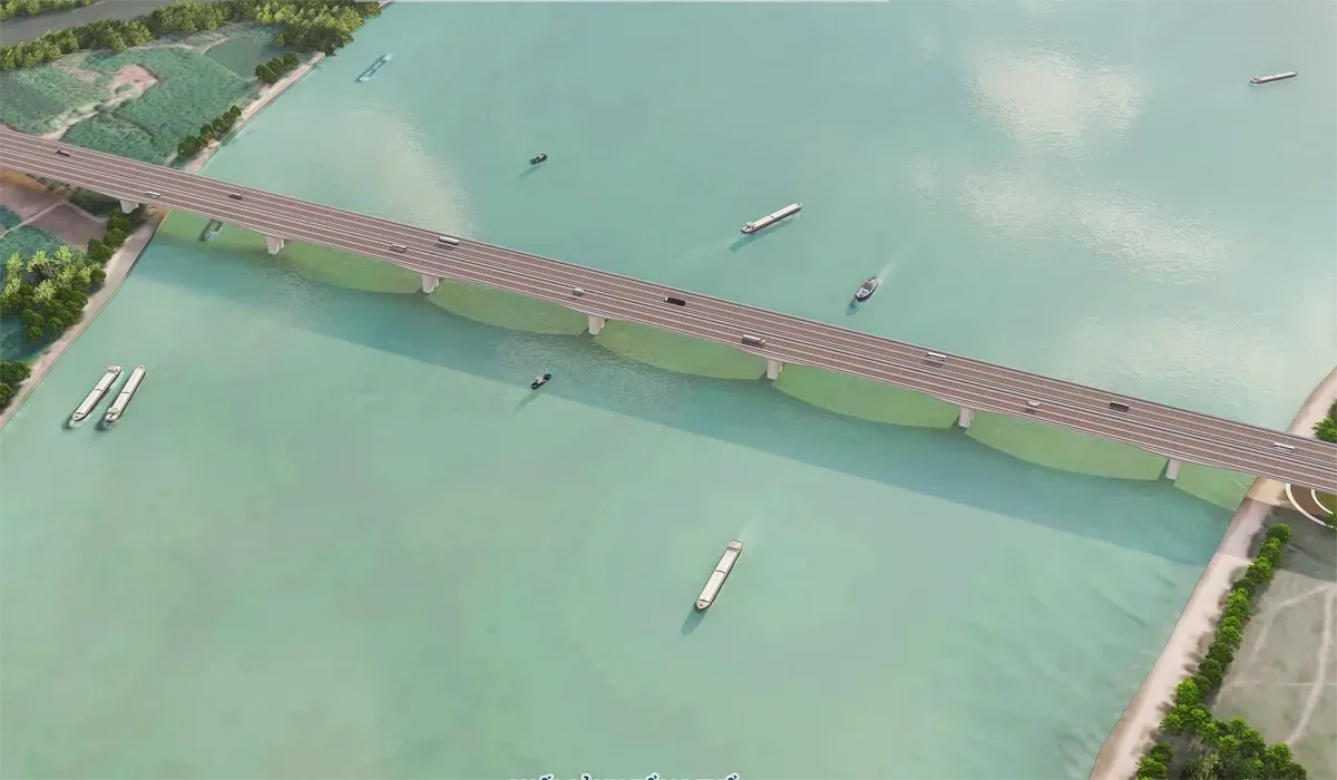 Phối cảnh cầu Hồng Hà bắc qua sông Hồng sau khi hoàn thành.