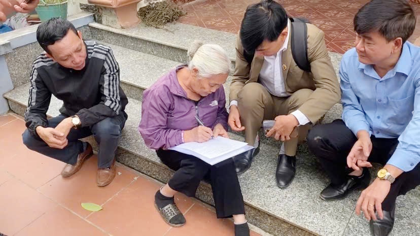Cán bộ xã Ô Diên đến từng hộ gia đình để tuyên truyền, vận động.