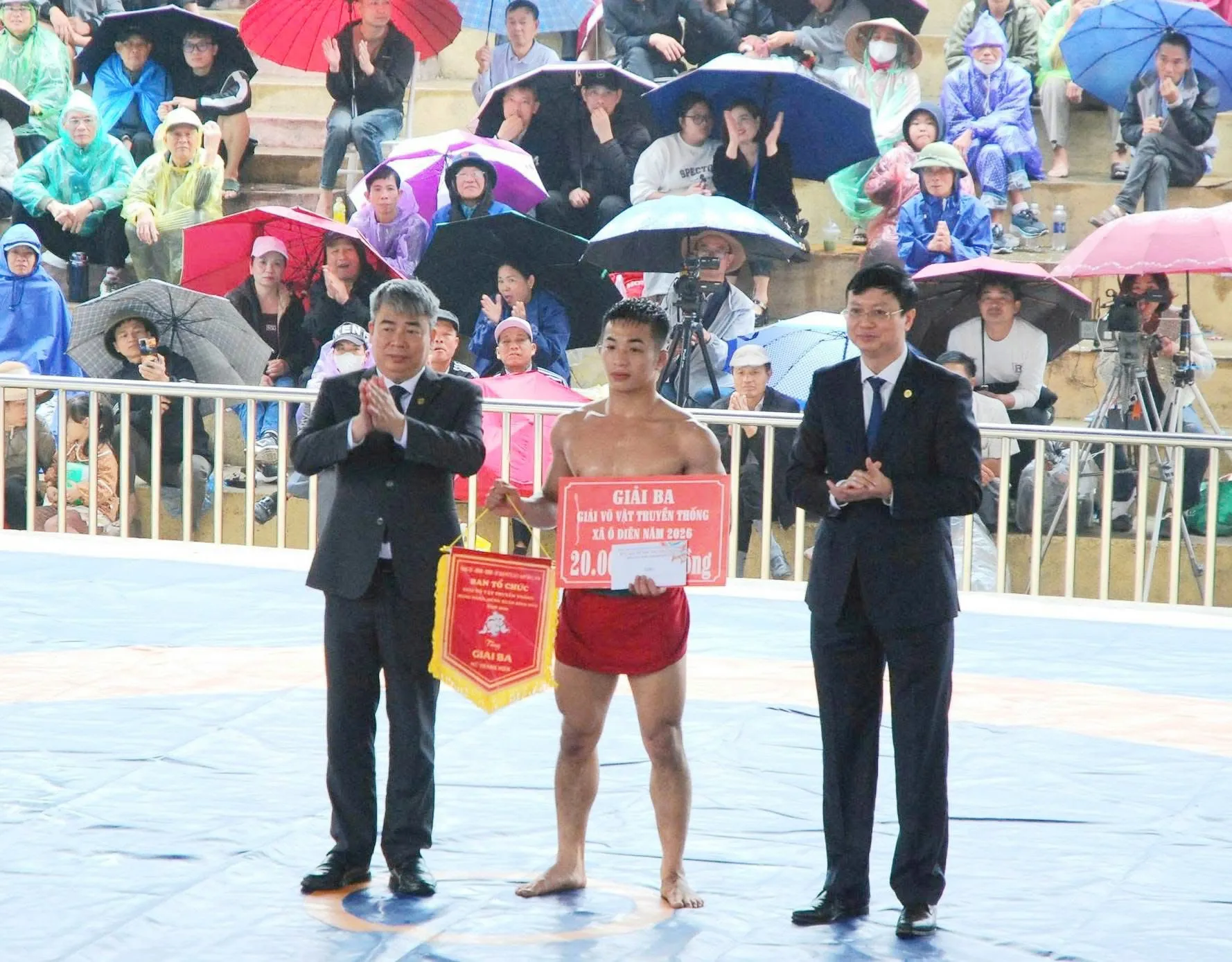 Giải võ vật truyền thống mừng Đảng, mừng Xuân Bính Ngọ 2026 xã Ô Diên thu hút đông đảo các đô vật đến từ các câu lạc bộ trên toàn quốc về tham gia thi đấu cùng cán bộ, Nhân dân, người yêu thích môn vật truyền thống đến xem và cổ vũ, tạo nên không khí sôi nổi, phấn khởi đầu Xuân mới.
