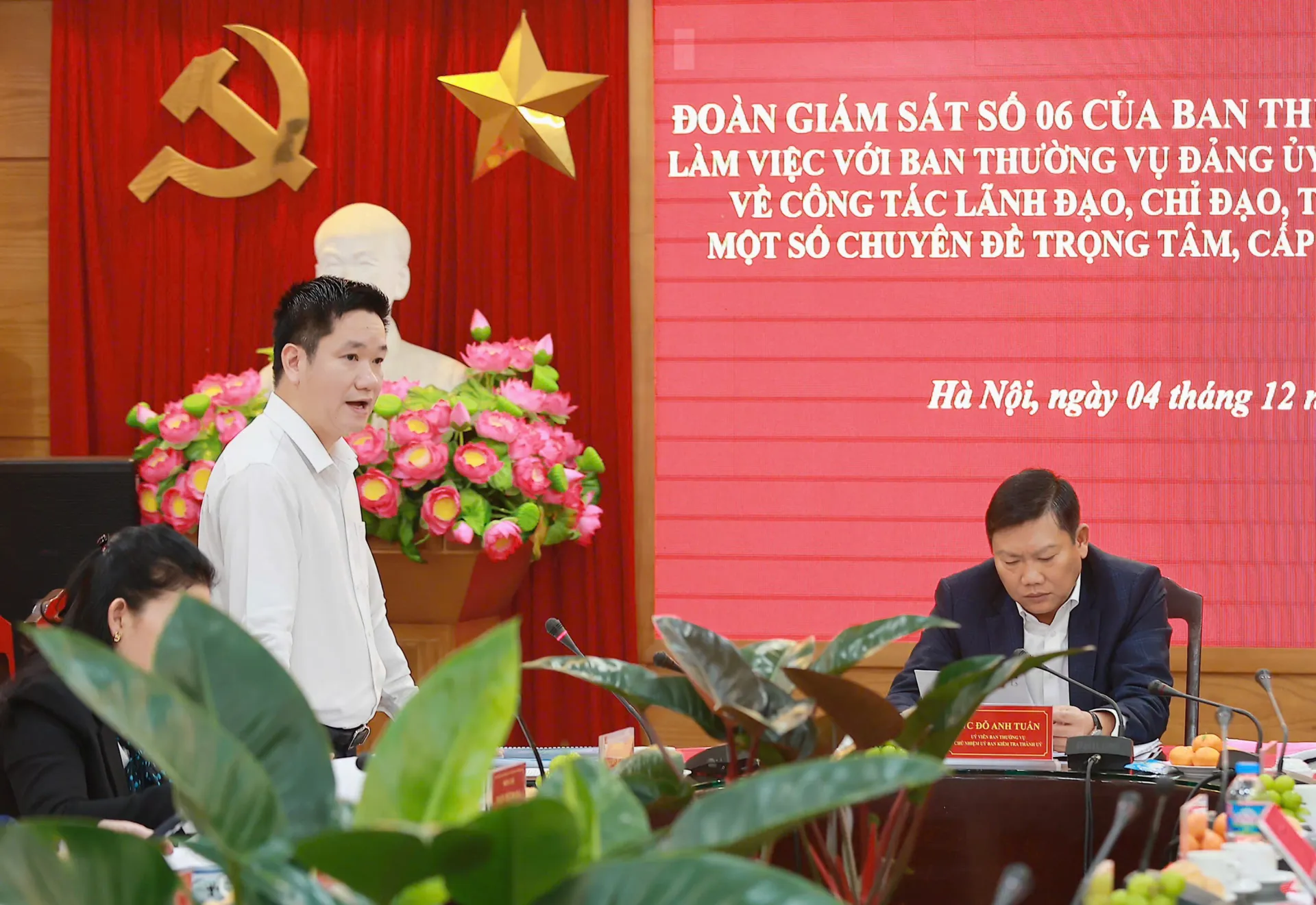 Đoàn giám sát số 06 của Ban Thường vụ Thành ủy Hà Nội do Ủy viên Ban Thường vụ Thành ủy, Chủ nhiệm Ủy ban Kiểm tra Thành ủy Đỗ Anh Tuấn làm Trưởng đoàn tiến hành giám sát Ban Thường vụ Đảng ủy phường Thanh Xuân
