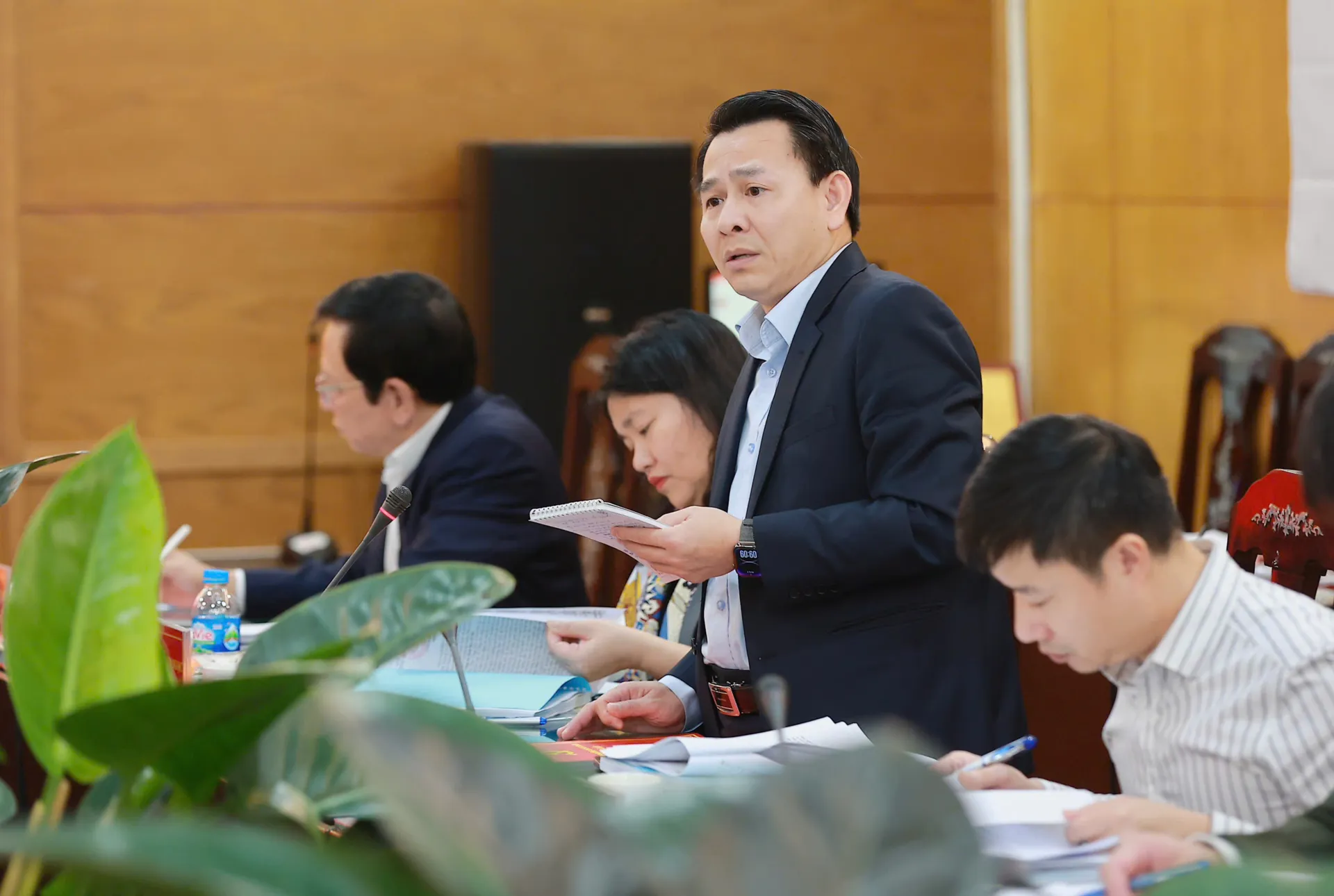 Các thành viên đoàn giám sát phát biểu ý kiến tại buổi làm việc