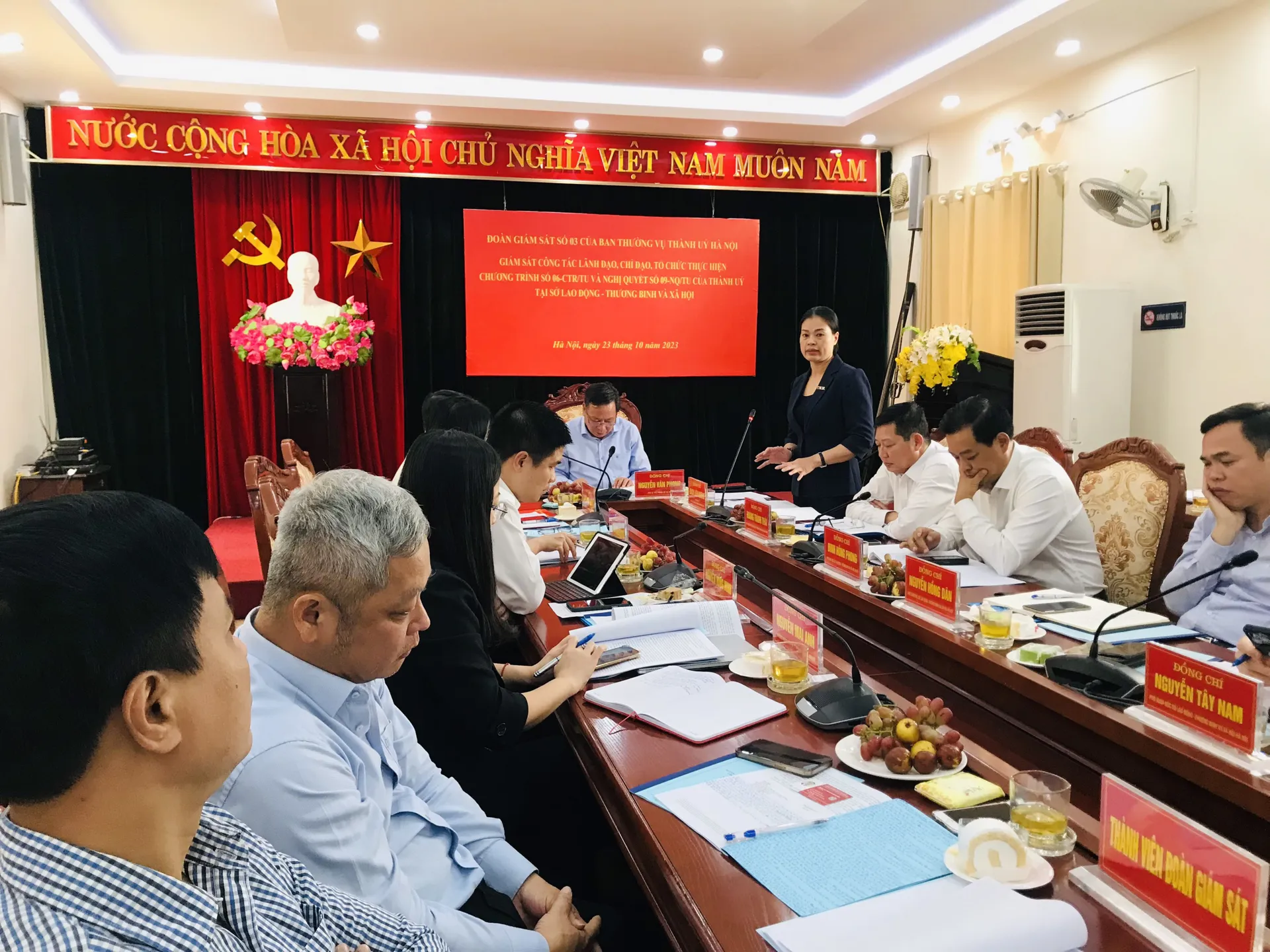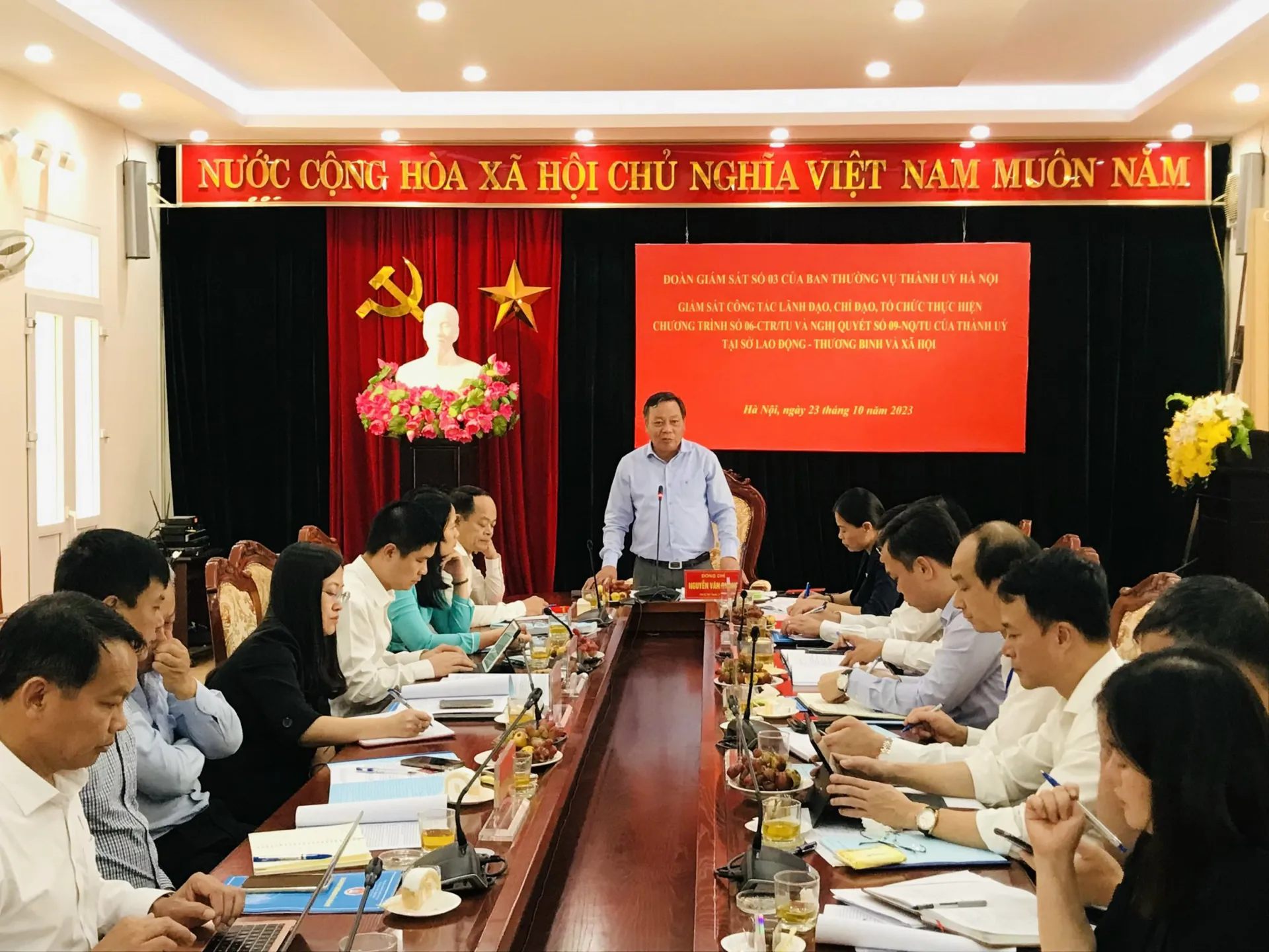Ngày 23/10, Đoàn Giám sát số 03 của Ban thường vụ Thành ủy Hà Nội giám sát công tác lãnh đạo, chỉ đạo, tổ chức thực hiện Chương trình số 06-CTr/TU và Nghị quyết số 09-NQ/TU của Thành ủy tại Sở LĐTB&XH Hà Nội.