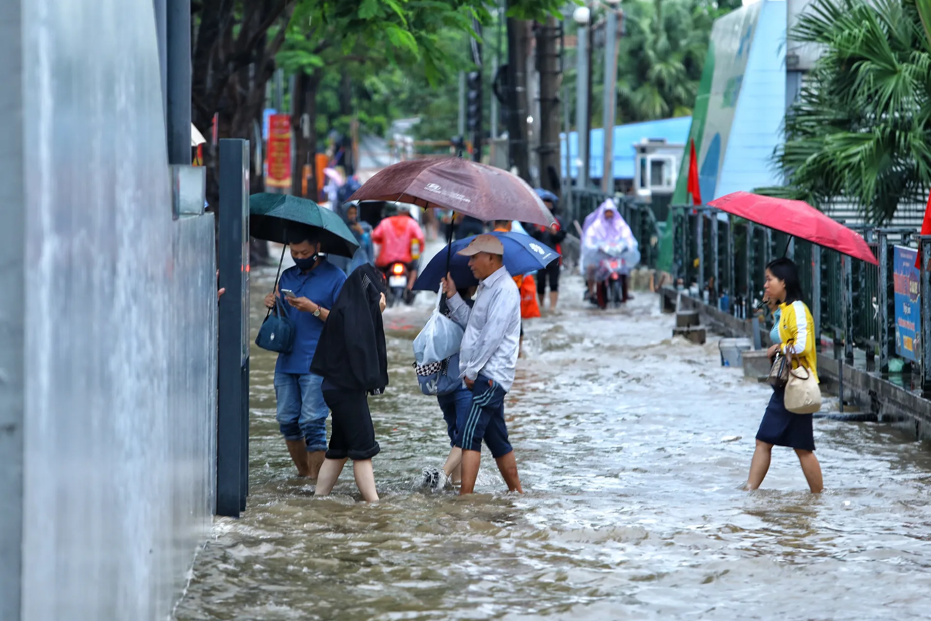 Kinhtedothi - Sáng ngày 26/8, Hà Nội mưa lớn do ảnh hưởng của cơn bão số 5. Nhiều tuyến đường trên địa bàn Hà Nội ngập sâu trong nước khiến việc đi lại của người dân gặp nhiều khó khăn.