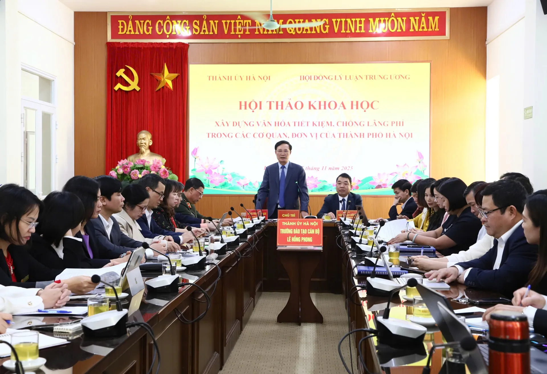 Kinhtedothi - Chiều 25/11, Thành ủy Hà Nội phối hợp với Hội đồng Lý luận Trung ương tổ chức Hội thảo khoa học với chủ đề: “Xây dựng văn hóa tiết kiệm, chống lãng phí trong các cơ quan, đơn vị thành phố Hà Nội” tại Trường Đào tạo cán bộ Lê Hồng Phong TP Hà Nội.