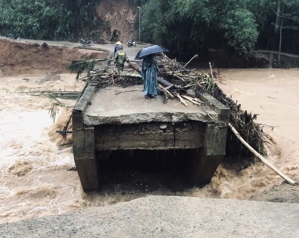 Chính quyền xã Sơn Hà đã triển khai lực lượng kiểm tra hiện trường, cắm biển cảnh báo nguy hiểm và khuyến cáo người dân không qua lại khu vực cầu bị gãy nhằm đảm bảo an toàn trong thời điểm nước lũ vẫn lên nhanh.