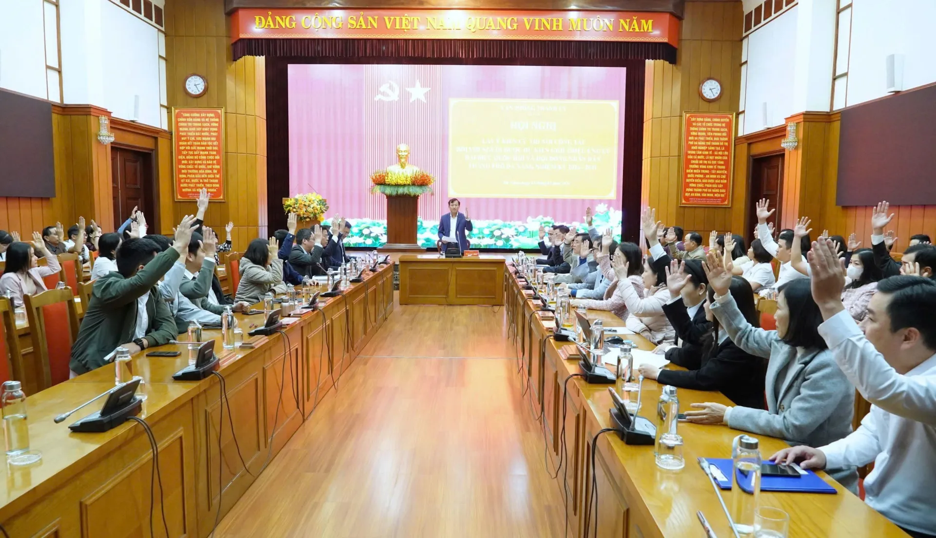 Tham dự hội nghị có Ủy viên Trung ương Đảng, Bí thư Thành ủy Đà Nẵng Lê Ngọc Quang; Phó Bí thư Thường trực Thành ủy Nguyễn Đình Vĩnh; Phó Bí thư Thành ủy, Chủ tịch HĐND thành phố Nguyễn Đức Dũng; Phó Bí thư Thành ủy, Chủ tịch UBND thành phố Phạm Đức Ấn cùng các Ủy viên Ban Thường vụ Thành ủy.