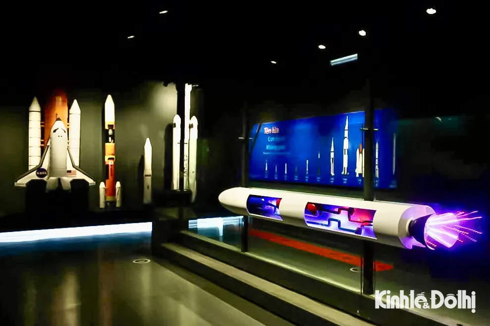 Khu trưng bày mô hình tên lửa và tàu con thoi thu hút đông đảo bạn trẻ. Các phiên bản mô phỏng giúp người tham quan hiểu rõ cấu trúc, nguyên lý vận hành của phương tiện chinh phục không gian. Các mô hình vệ tinh, hành tinh và tên lửa được chế tác tỉ mỉ, bố trí khoa học và chân thực, mang đến trải nghiệm vừa đẹp mắt vừa ấn tượng.