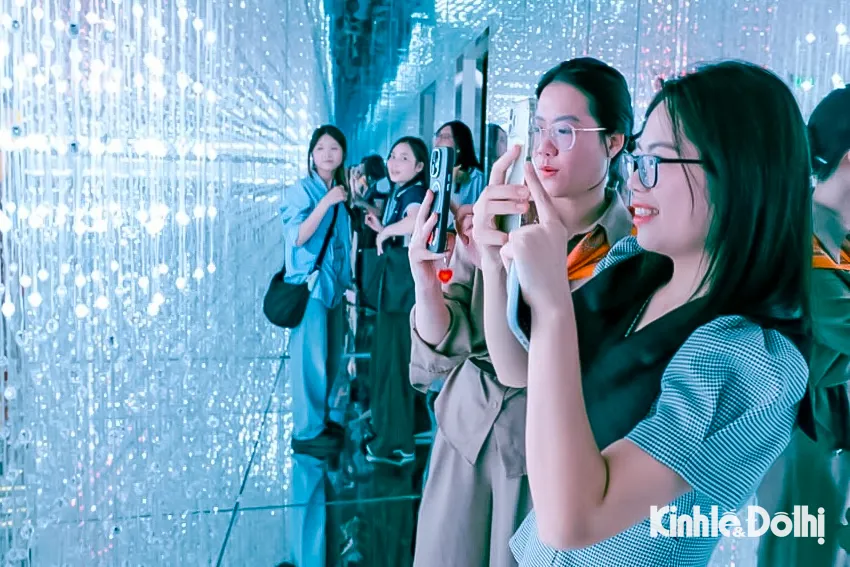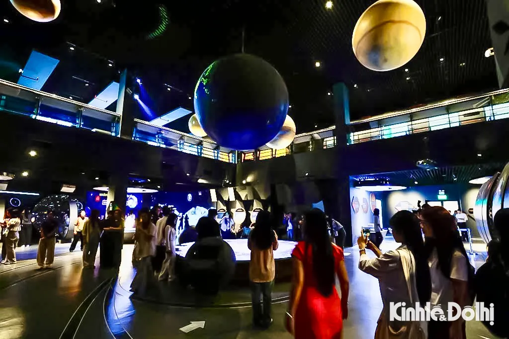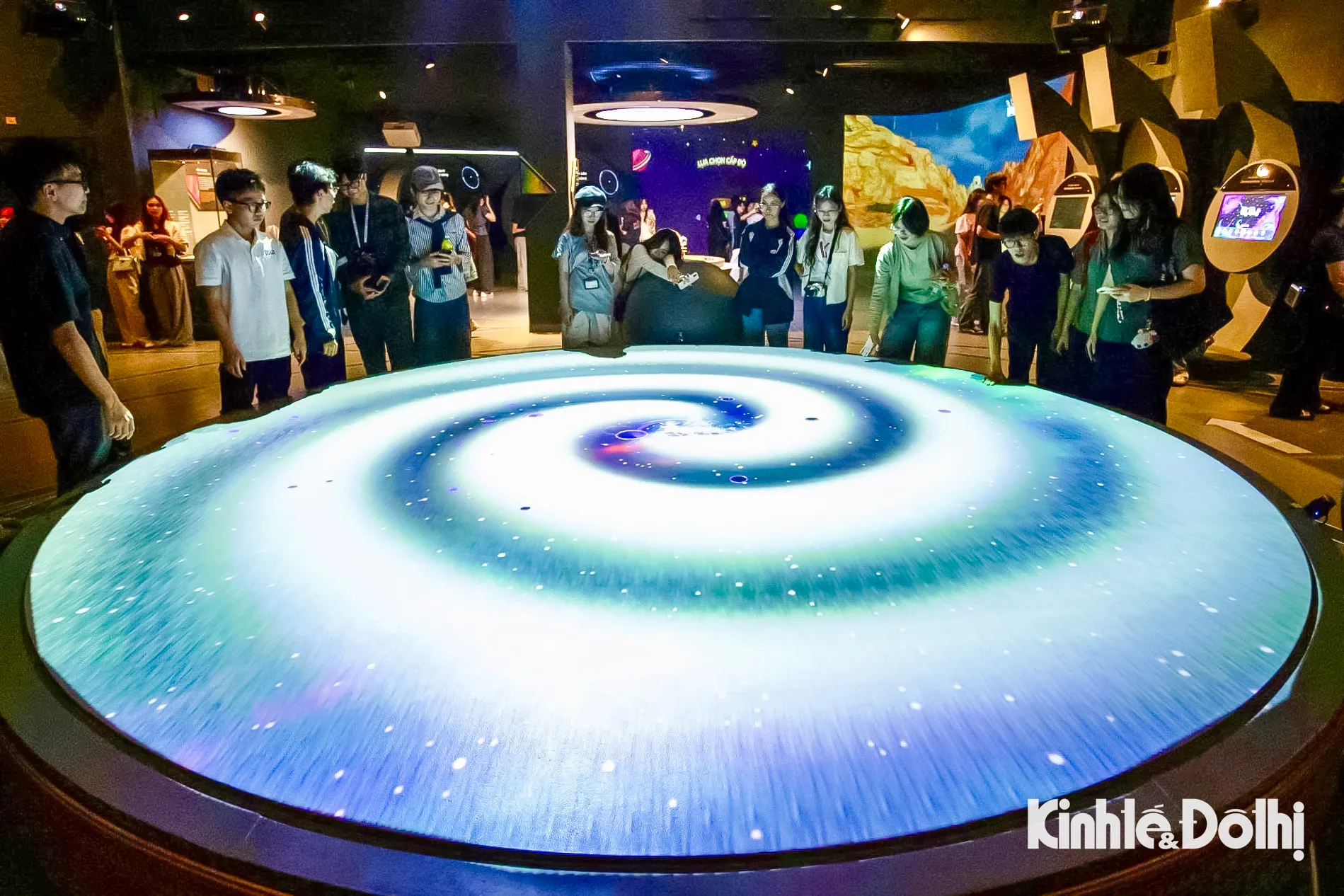 Người dân và du khách, đặc biệt là giới trẻ, thích thú trải nghiệm, khám phá trong không gian ánh sáng và công nghệ tại Bảo tàng Vũ trụ Việt Nam.