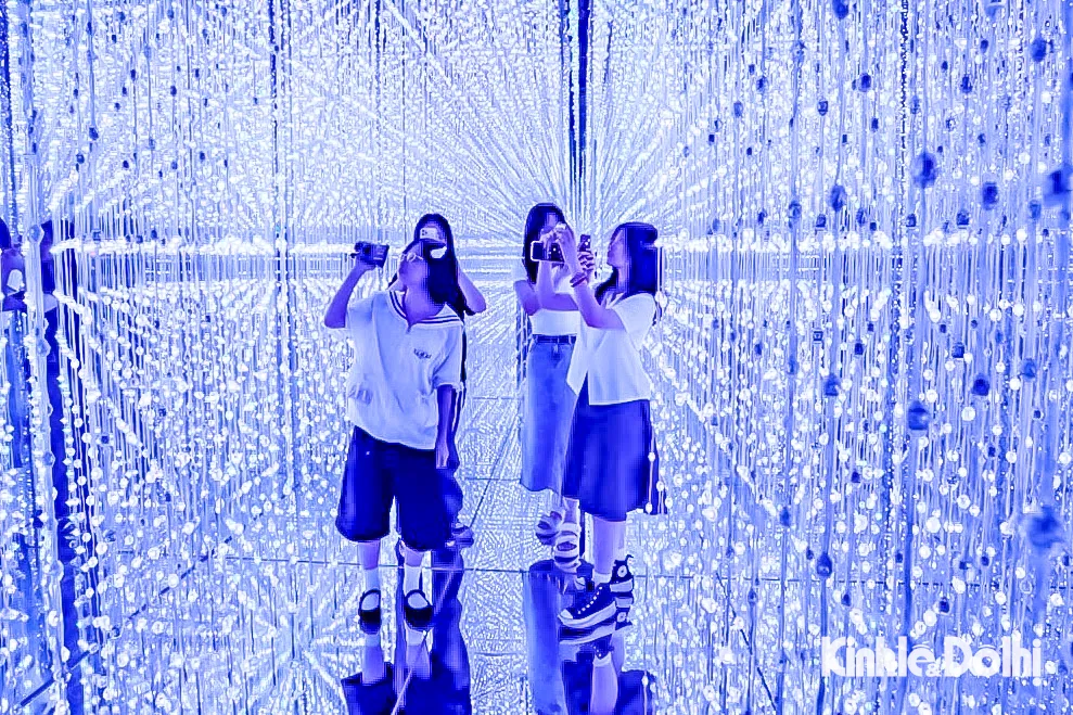 Phòng "Vũ trụ bao la bí ẩn", với thiết kế 6 mặt kính. Hệ thống đèn LED thả từ trần nháy theo nhạc, kết hợp cùng gương vô cực, tạo nên hiệu ứng không gian bất tận.