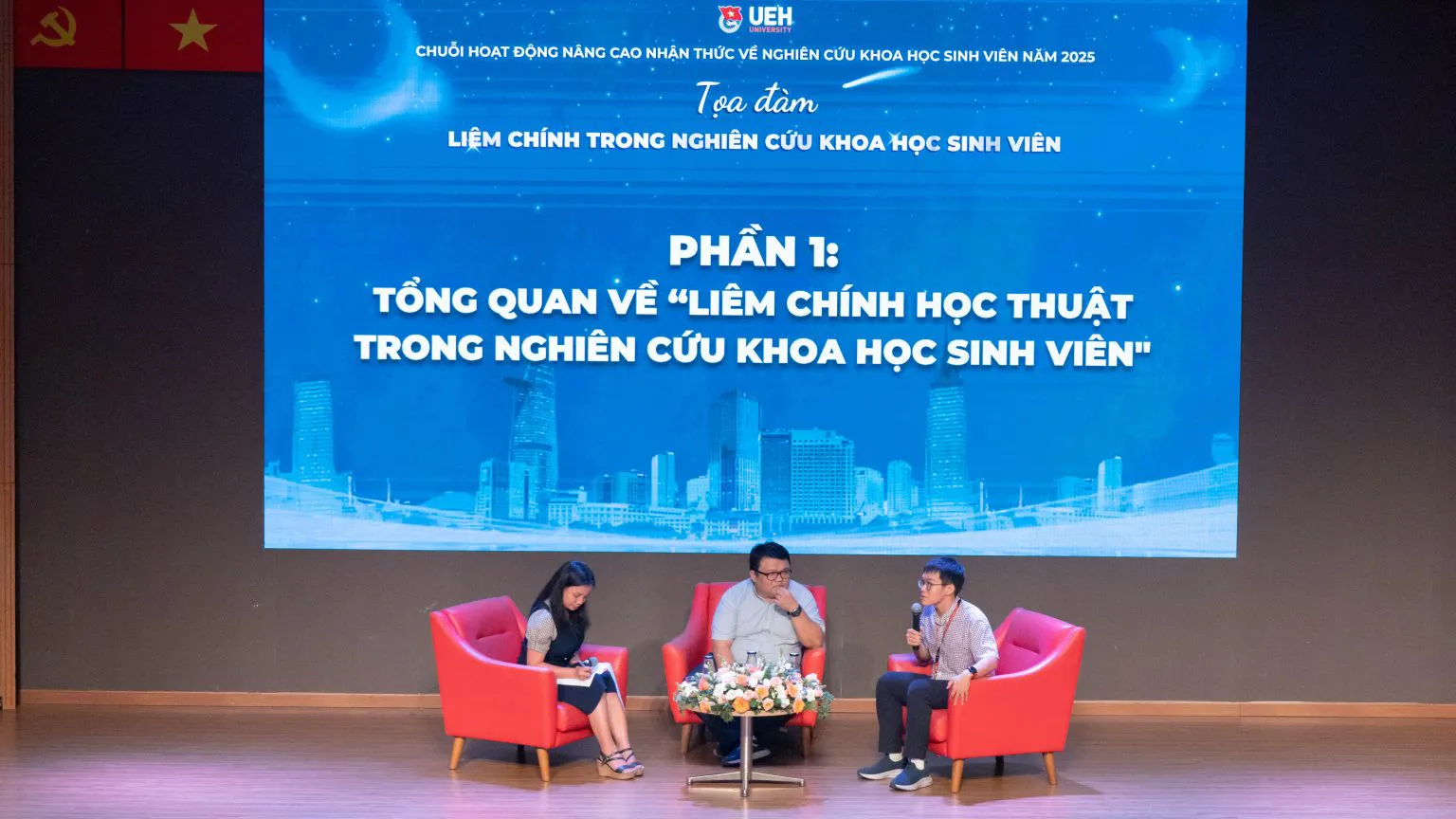 Tọa đàm “Liêm chính trong nghiên cứu khoa học sinh viên” góp phần nâng cao nhận thức về đạo đức học thuật và trách nhiệm trong hoạt động nghiên cứu. Ảnh: UEH