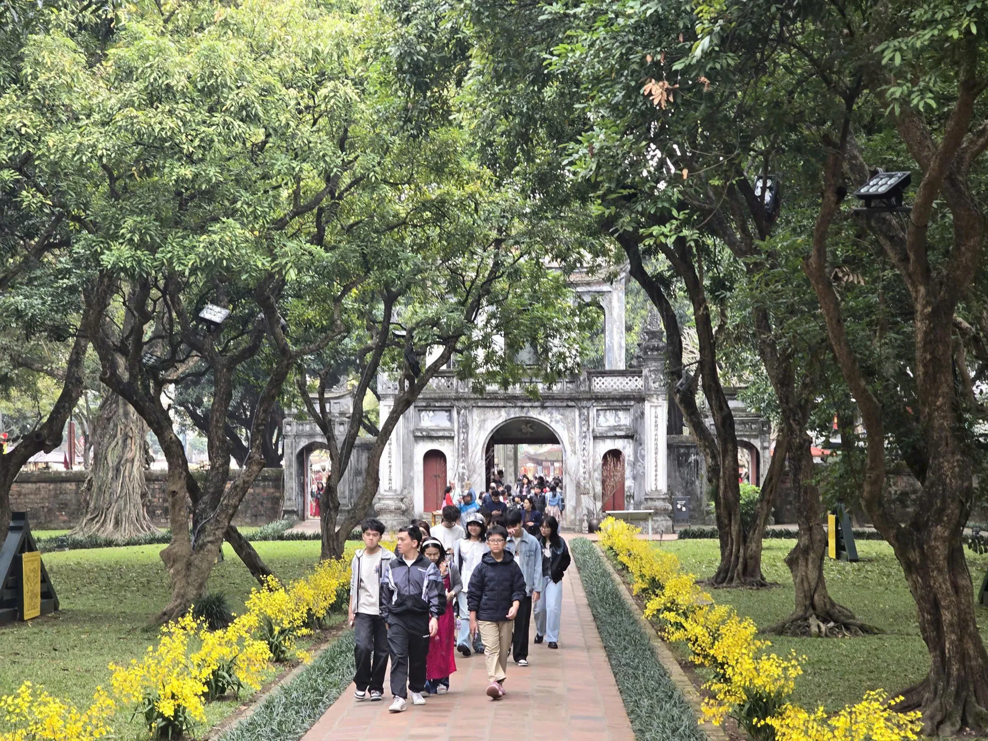 Ngay từ sáng sớm, đông đảo người dân Thủ đô đã đến Di tích Quốc gia đặc biệt Văn Miếu - Quốc Tử Giám để xin chữ. Ảnh: Tuyết Linh