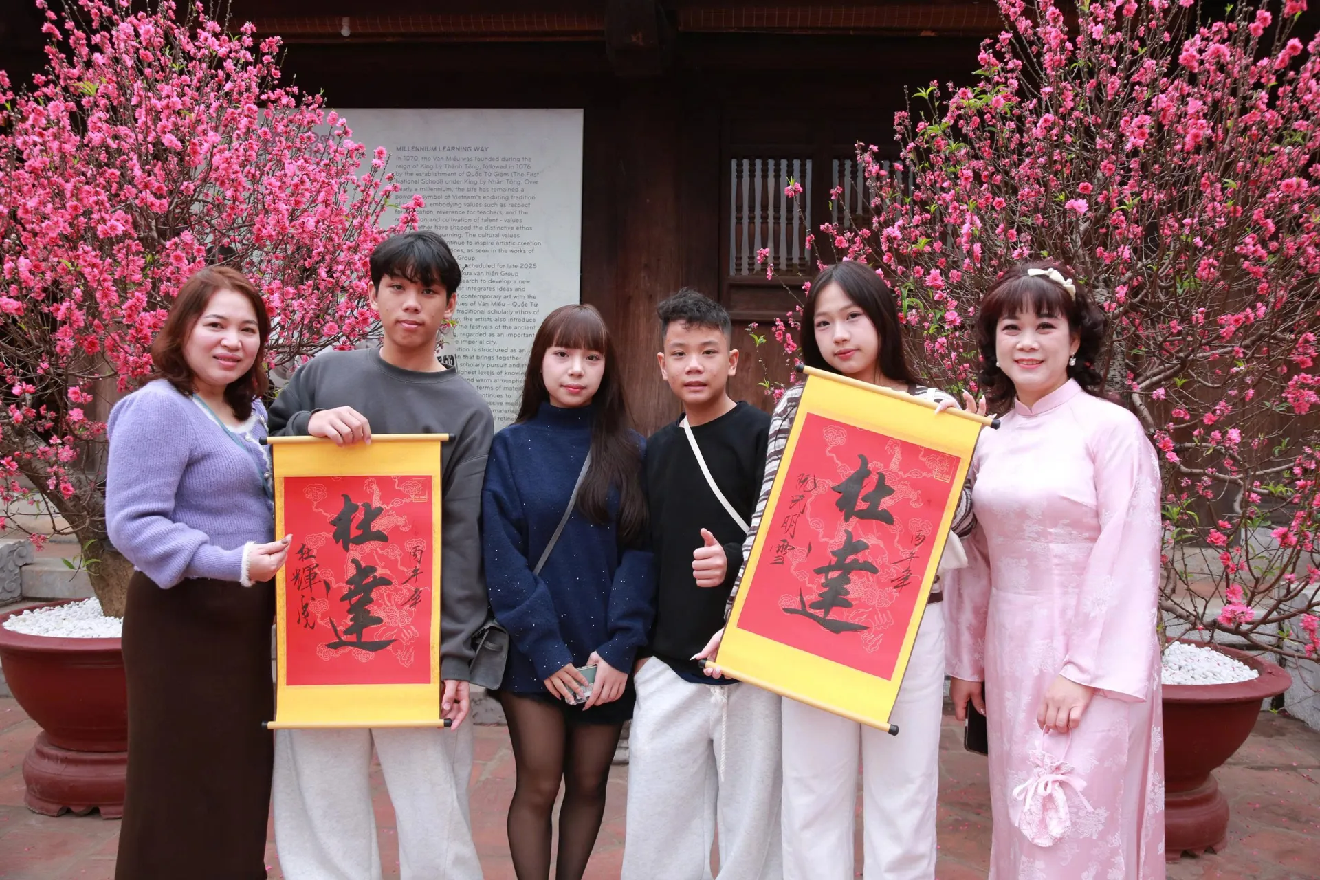 Chị Thanh Hòa (phường Đống Đa, TP Hà Nội) chia sẻ: “Văn Miếu - Quốc Tử Giám là di tích lịch sử, biểu tượng của tinh thần hiếu học nghìn năm. Vì vậy, hàng năm, mỗi dịp đầu xuân, tôi đều đưa các con của mình đến đây xin chữ để mong các con học hành hanh thông, thi cử đỗ đạt. Riêng năm nay, con gái lớn sẽ thi vào lớp 10, nên tôi cũng đưa con đến để xin 2 chữ “Thành Đạt”, mong đây sẽ là động lực để con vững tin ôn tập và chiến thắng”.