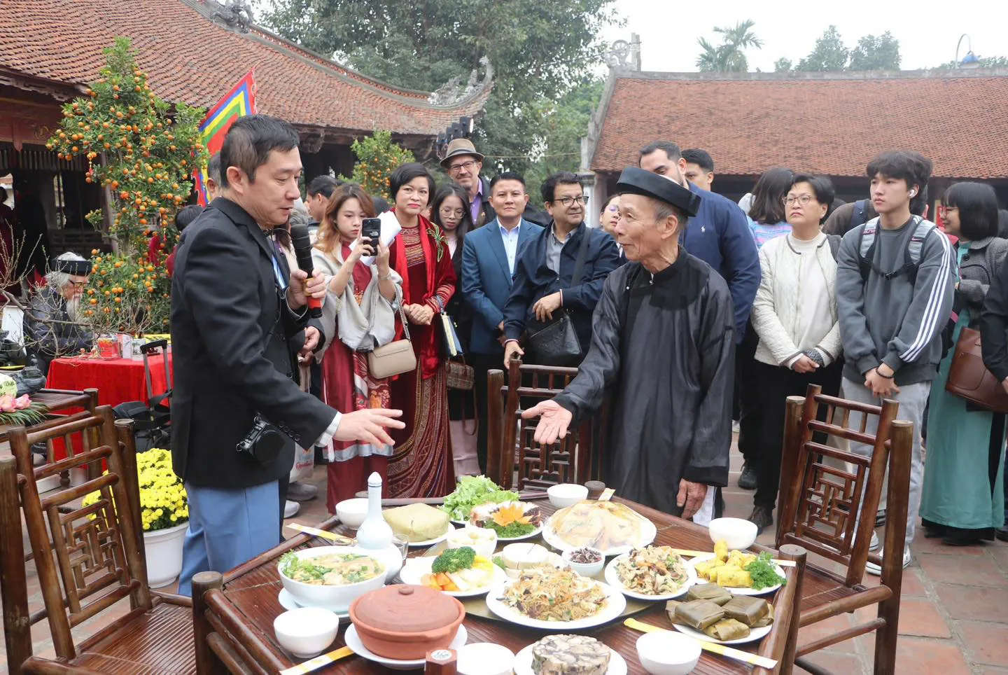 Trong không khí nhộn nhịp ngày Tết, các đại biểu và du khách đã được trải nghiệm phong tục truyền thống ngày Tết ở làng quê Bắc Bộ, cùng nhau hân hoan thưởng thức những món ăn đặc sản và tham gia các trò chơi dân gian như nhảy sạp, bắt chạch trong chum, rồi xem hát tuồng, chèo, làm bánh tẻ, chè lam, kẹo lạc hay gói bánh chưng…