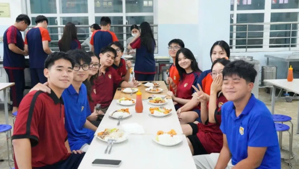 Học sinh trường THCS&THPT Nguyễn Bỉnh Khiêm được ăn tối tại trường. Ảnh: nhà trường cung cấp tối 30/9.