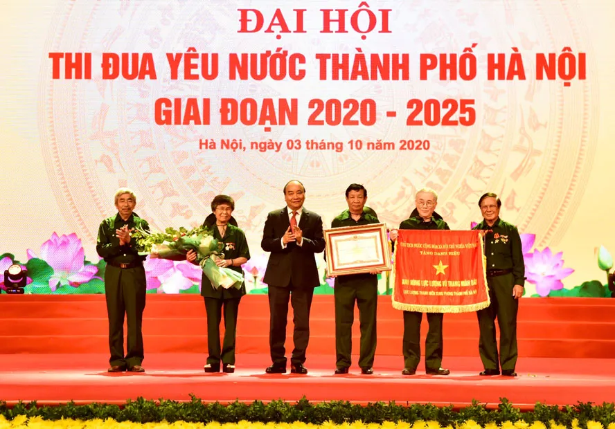 | Thủ tướng Nguyễn Xuân Phúc trao danh hiệu “Anh hùng Lực lượng vũ trang Nhân dân” cho Hội Cựu thanh niên xung phong thành phố Hà Nội. |