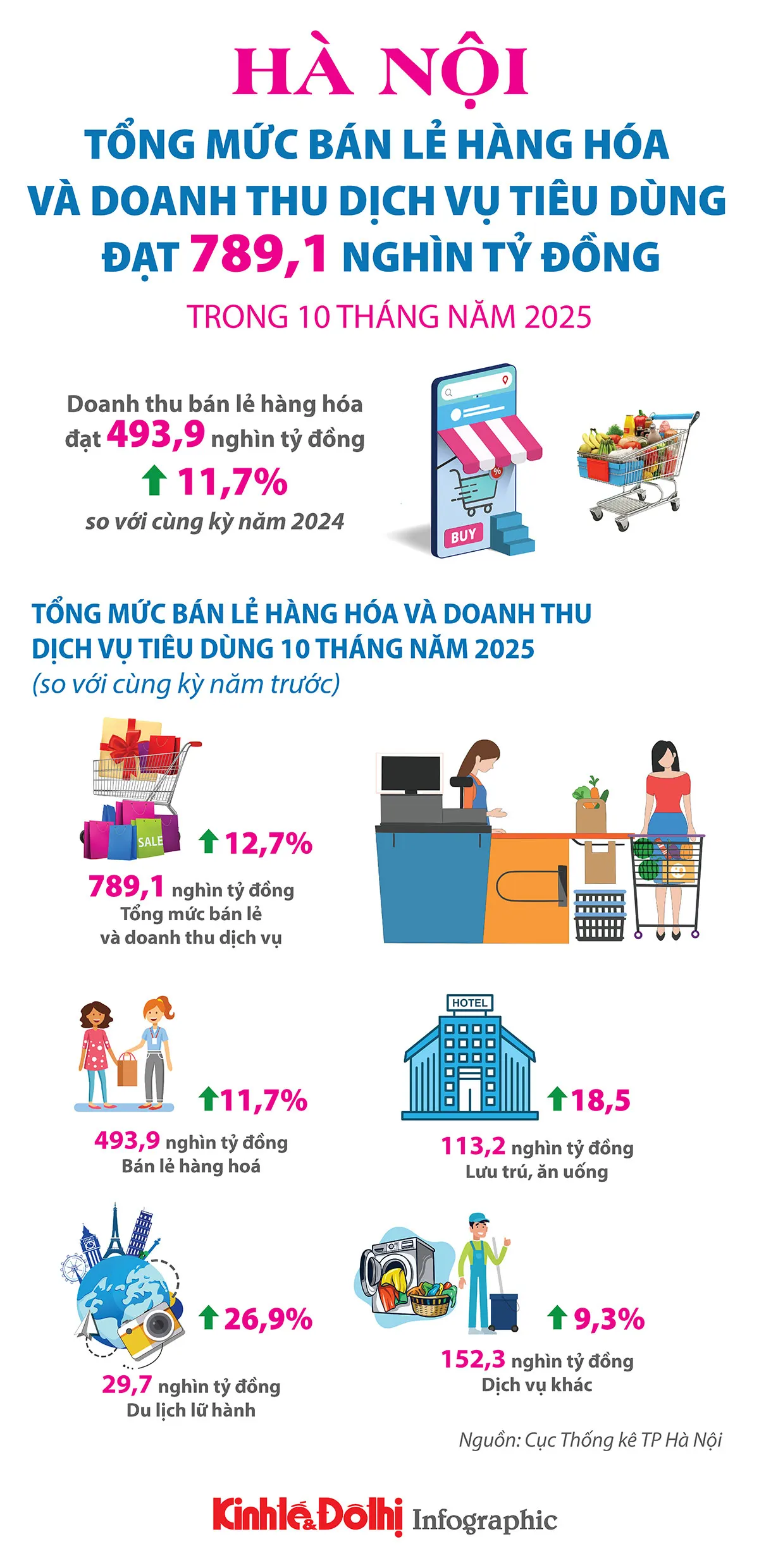 Hà Nội: 10 tháng năm 2025, tổng mức bán lẻ hàng hóa và doanh thu dịch vụ tiêu dùng đạt 789,1 nghìn tỷ