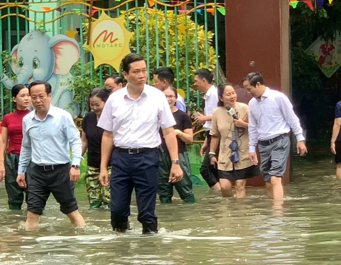 Đáng lưu ý, Trường Mầm non Trung Hoà, phường Yên Hoà và Trường Mầm non Phú Đô, phường Từ Liêm bị ngập nặng; nhiều trường còn lại bị nước ngập trong khu vực sân trường.