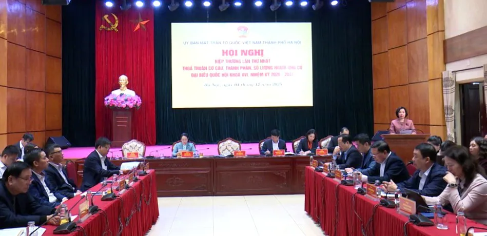 Kinhtedothi- Hôm nay, 4/12, Ủy ban MTTQ Việt Nam TP Hà Nội tổ chức Hội nghị hiệp thương lần thứ nhất thỏa thuận cơ cấu, thành phần, số lượng người ứng cử đại biểu Quốc hội khóa XVI, nhiệm kỳ 2026-2031 và thỏa thuận cơ cấu, thành phần, số lượng, người ứng cử đại biểu HĐND TP Hà Nội, nhiệm kỳ 2025-2031.