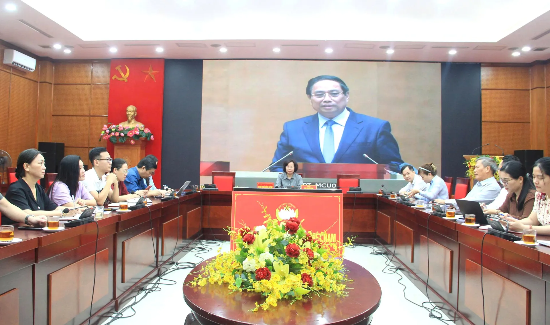 Kinhtedothi-Chủ trì Hội nghị học tập, nghe quán triệt các Nghị quyết tại điểm cầu trụ sở Ủy ban Mặt trận Tổ quốc (MTTQ) Việt Nam TP Hà Nội có Ủy viên Ban Thường vụ Thành ủy, Phó Chủ tịch Thường trực Ủy ban MTTQ Việt Nam TP.Bùi Huyền Mai.