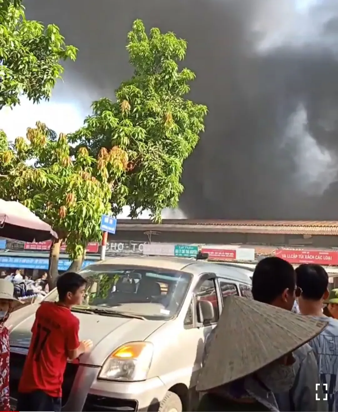 Tại hiện trường, khói bốc cao hàng chục mét. Có khoảng gần chục ki ốt bị cháy. Nhiều người dân, tiểu thương vận chuyển hàng hóa trong chợ ra ngoài tránh cháy lan.
