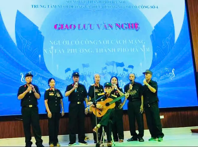 Trung tâm Nuôi dưỡng và điều dưỡng người có công số 4 Hà Nội tổ chức giao lưu văn nghệ cho người có công xã Tây Phương, TP Hà Nội. Ảnh: Nguyễn Nho.