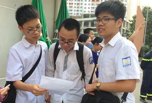 Các em học sinh trao đổi kết quả làm bài thi tuyển sinh vào lớp 10 - THPT năm học 2018 - 2019.