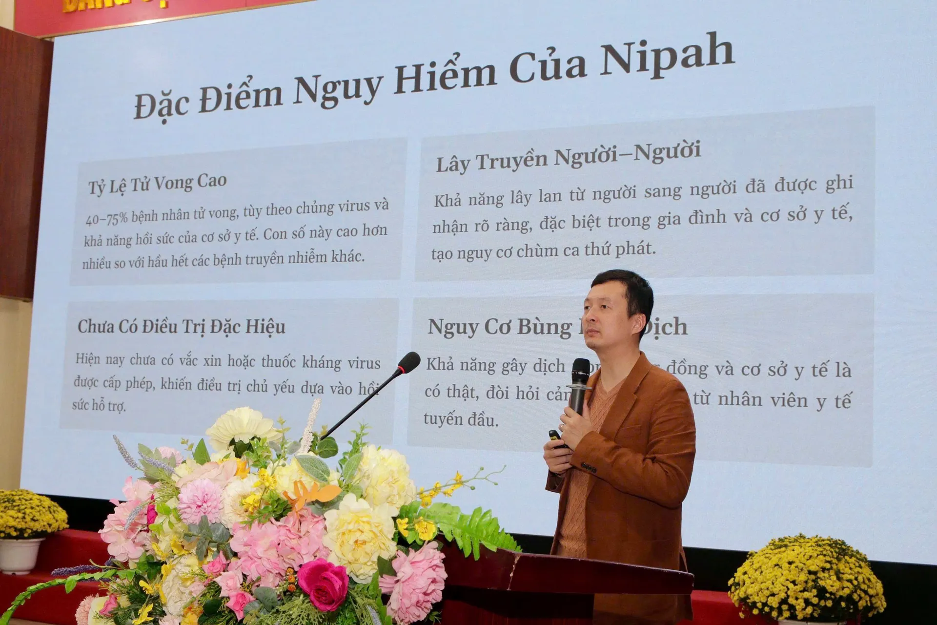 Bác sĩ chuyên khoa II Dương Quốc Bảo – Phó Trưởng khoa Truyền nhiễm – Bệnh viện Đa khoa Đống Đa trình bày về những đặc điểm nguy hiểm của virus Nipah.
