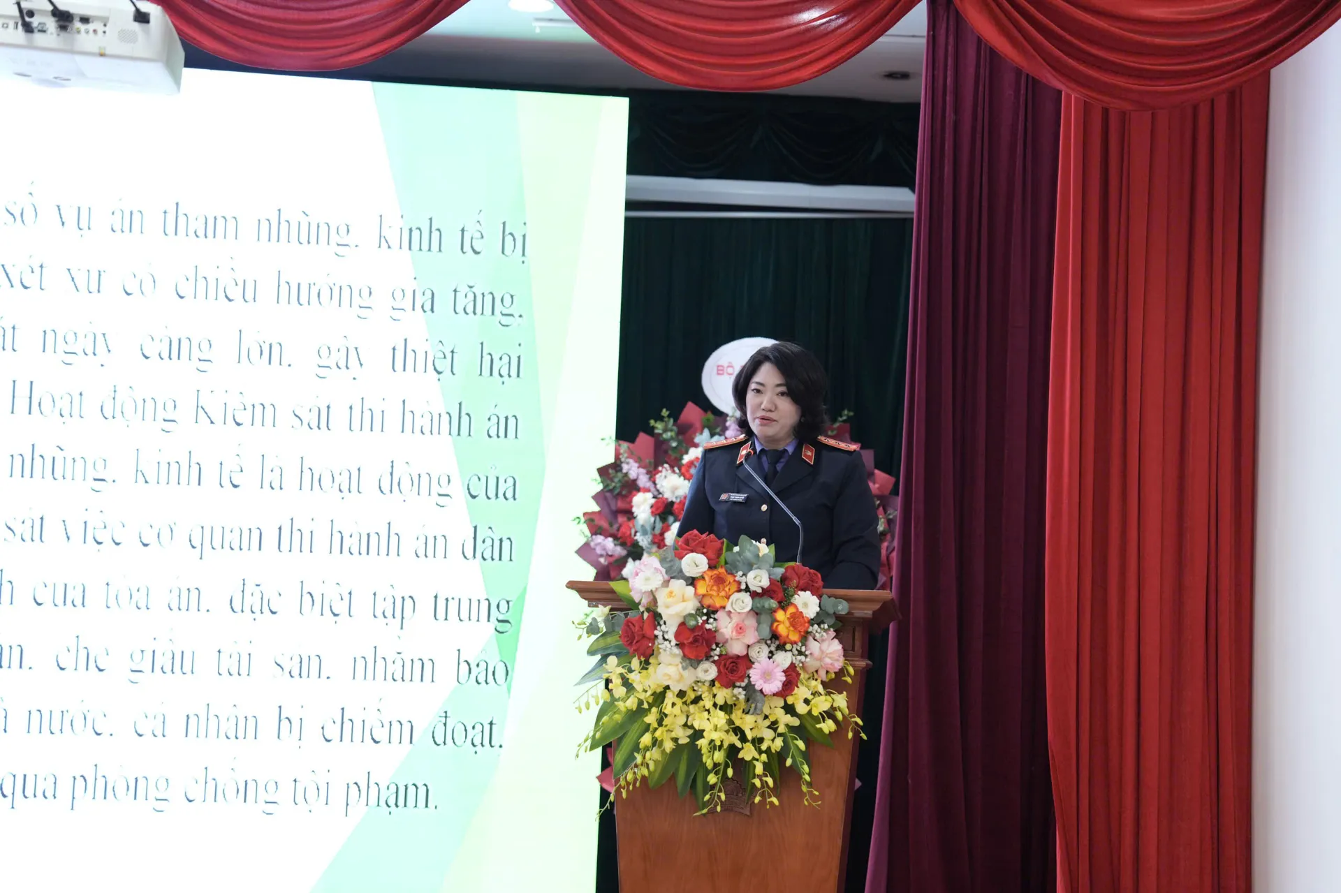 Phát biểu chỉ đạo, Thứ trưởng Bộ Tư pháp Đặng Hoàng Oanh ghi nhận, biểu dương những kết quả nổi bật của Cơ quan THADS TP Hà Nội trong năm 2025, với khối lượng việc và tiền thi hành xong lớn, nhiều vụ việc phức tạp, thuộc diện Ban Chỉ đạo Trung ương theo dõi đã được tổ chức thi hành dứt điểm.