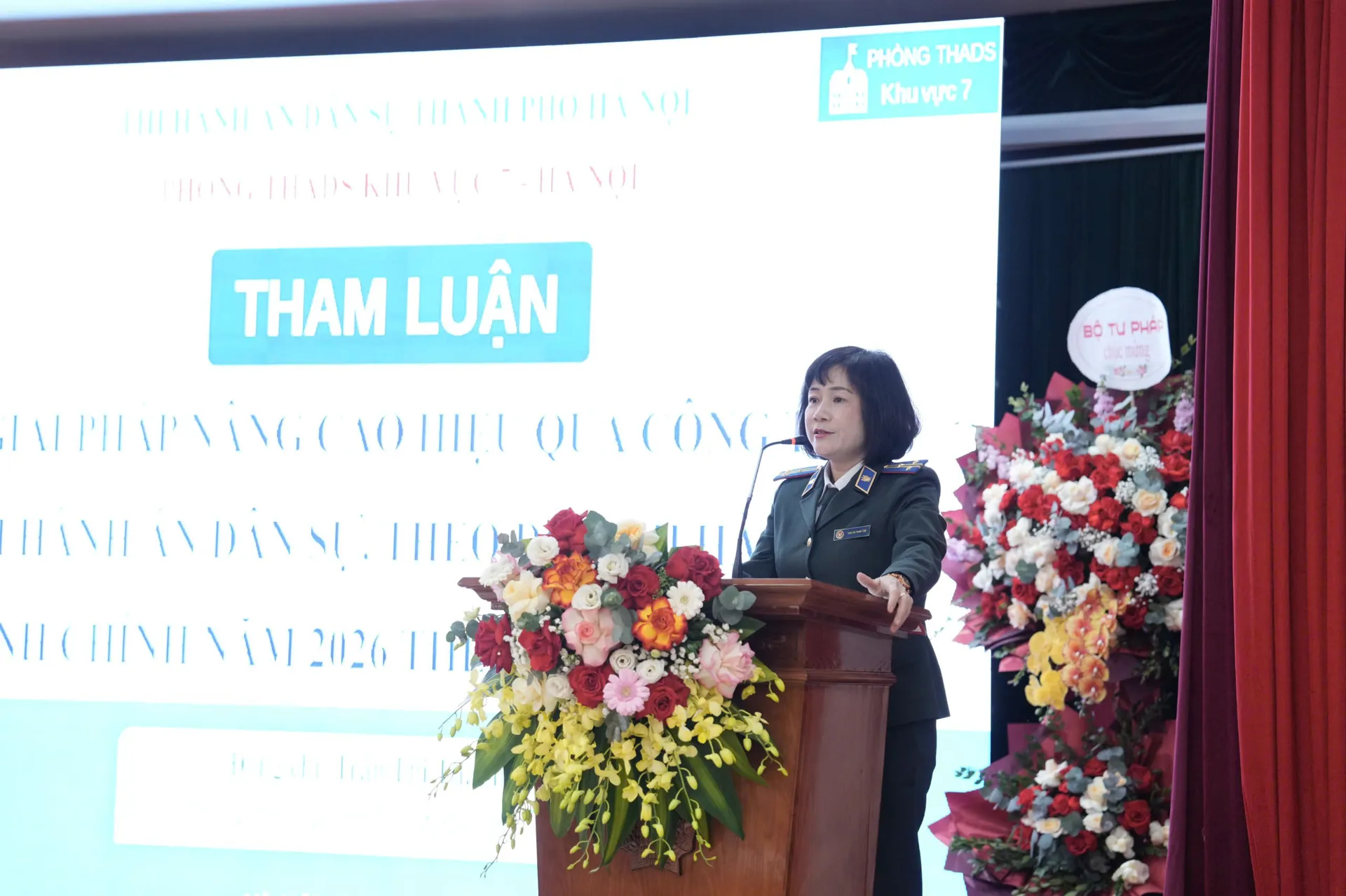 Về nhiệm vụ thời gian tới, Thứ trưởng Bộ Tư pháp Đặng Hoàng Oanh đề nghị Cơ quan THADS TP Hà Nội thực hiện nghiêm các chỉ đạo của Phó Thủ tướng Hồ Quốc Dũng tại hội nghị triển khai thực hiện chỉ tiêu, nhiệm vụ năm 2026 của Hệ thống THADS, đồng thời tập trung quyết liệt vào 6 nhóm nhiệm vụ trọng tâm.