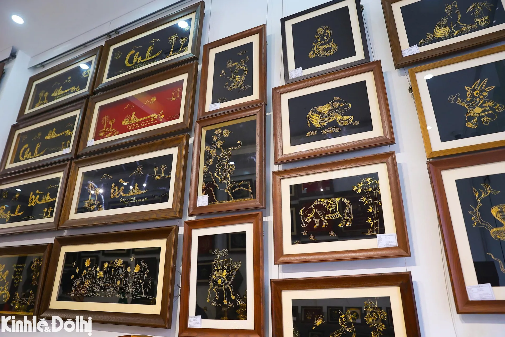 Không chỉ linh vật mạ vàng, những bức tranh dát vàng 12 con giáp lấp lánh cũng được nhiều người tìm mua để trưng bày, làm quà biếu Tết.