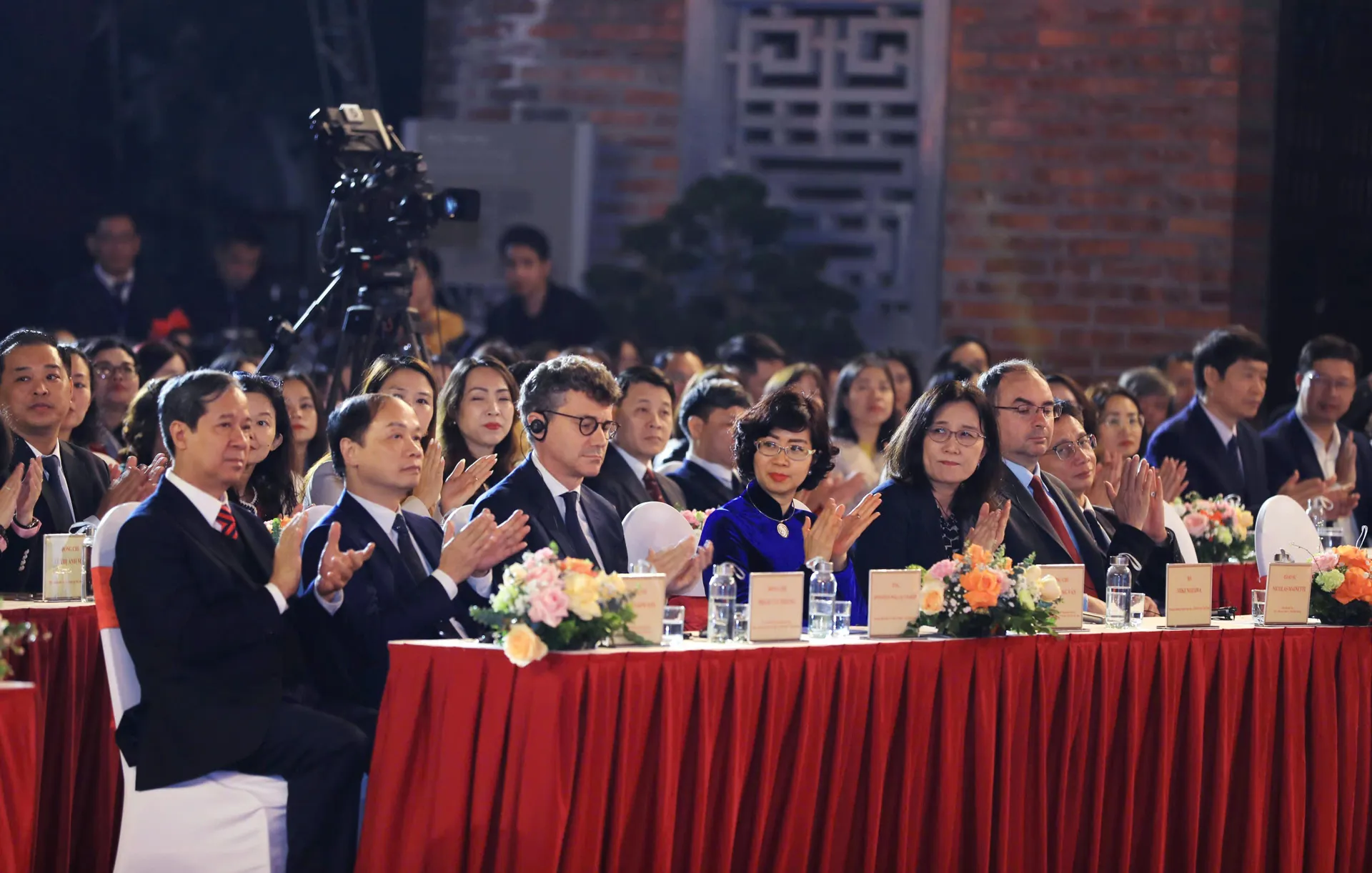 Trong khuôn khổ lễ đón nhận, các đại biểu đã được thưởng thức chương trình nghệ thuật đặc sắc chủ đề “Văn hiến Thăng Long – Tinh hoa đạo học" với 2 chương: “Tinh hoa văn hiến Thăng Long” và “Tiên học lễ, hậu học văn”.