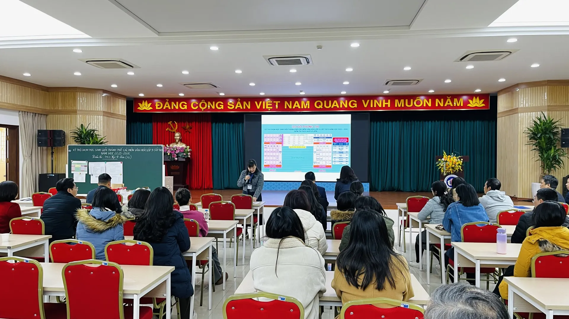 Kỳ thi chọn học sinh giỏi thành phố các môn văn hoá lớp 9 cấp THCS, năm học 2025 – 2026 được tổ chức tại 30 điểm thi, đặt ở 30 trường THCS trên địa bàn TP với 316 phòng thi chính thức, 30 phòng thi dự phòng. Để công tác tổ chức kỳ thi diễn ra an toàn, đúng quy chế, Sở GD&ĐT Hà Nội đã điều động gần 1.350 người (cán bộ, giáo viên, nhân viên, công an, an ninh) tham gia tổ chức coi thi, trong đó có 670 cán bộ coi thi.
