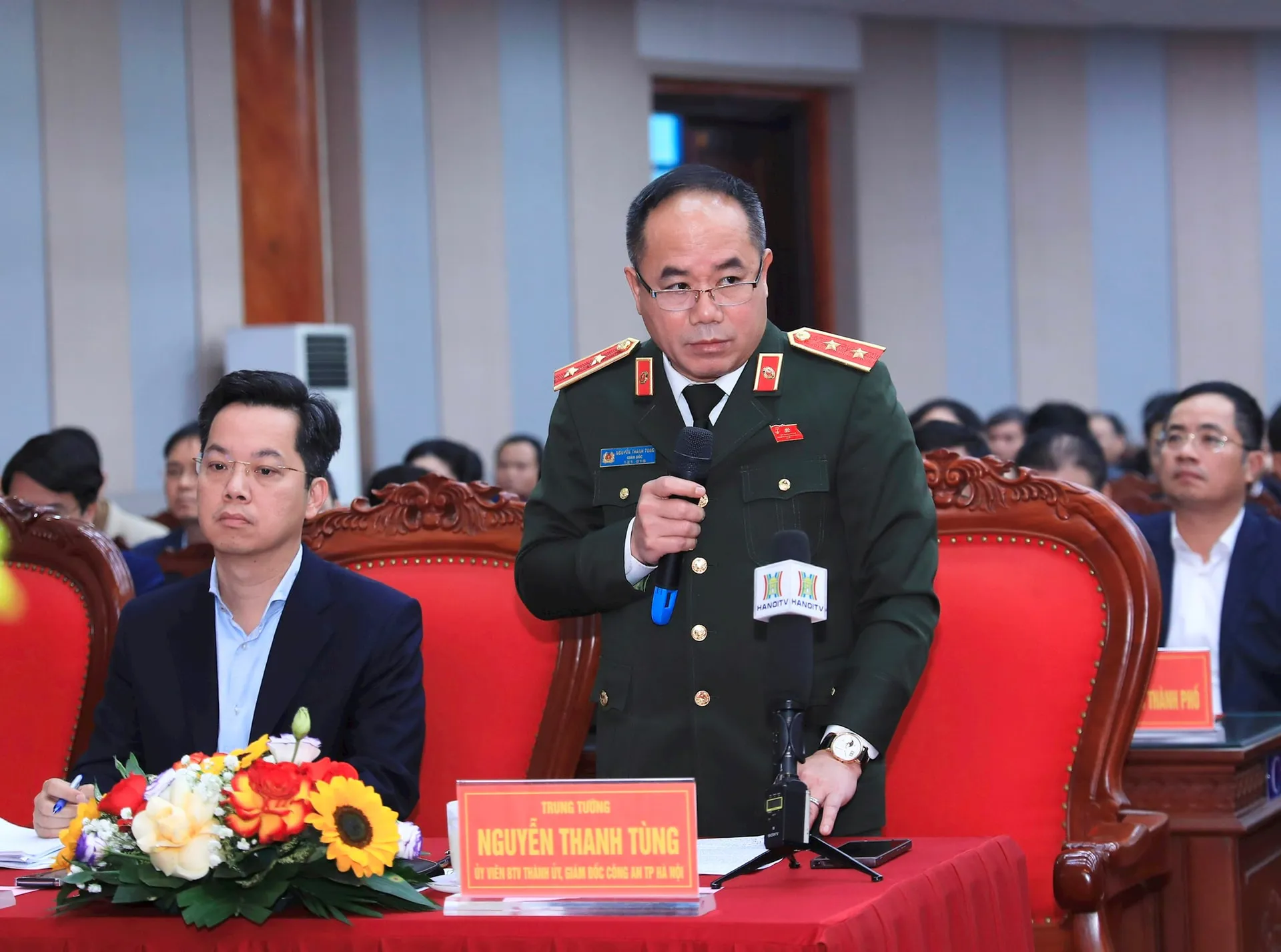 Giám đốc Công an thành phố - Trung tướng Nguyễn Thanh Tùng phát biểu tại hội nghị.
