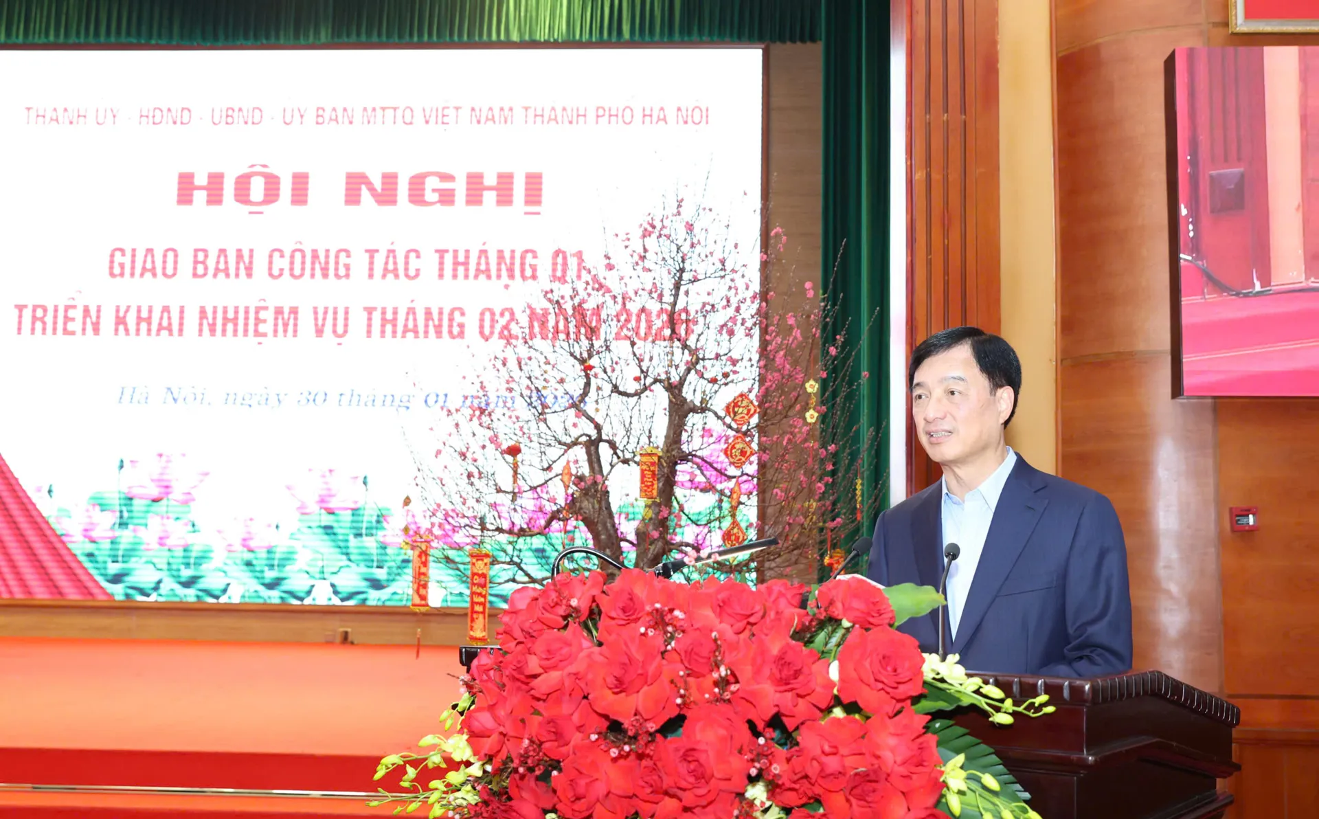 Chủ trì hội nghị có Ủy viên Bộ Chính trị, Bí thư Thành ủy Hà Nội Nguyễn Duy Ngọc; Ủy viên T.Ư Đảng, Phó Bí thư Thành uỷ, Chủ tịch UBND TP Vũ Đại Thắng; Ủy viên T.Ư Đảng, Phó Bí thư Thành uỷ Nguyễn Trọng Đông; Phó Bí thư Thường trực Thành ủy Nguyễn Văn Phong; Phó Bí thư Thành uỷ, Chủ tịch HĐND TP Phùng Thị Hồng Hà và Chủ tịch Ủy ban MTTQ Việt Nam TP Bùi Huyền Mai.