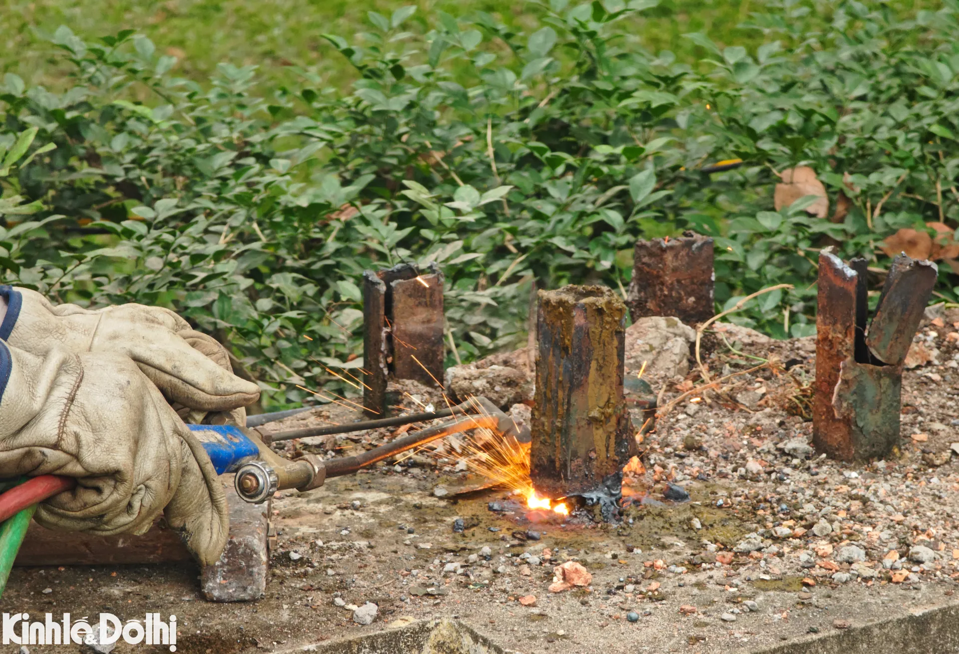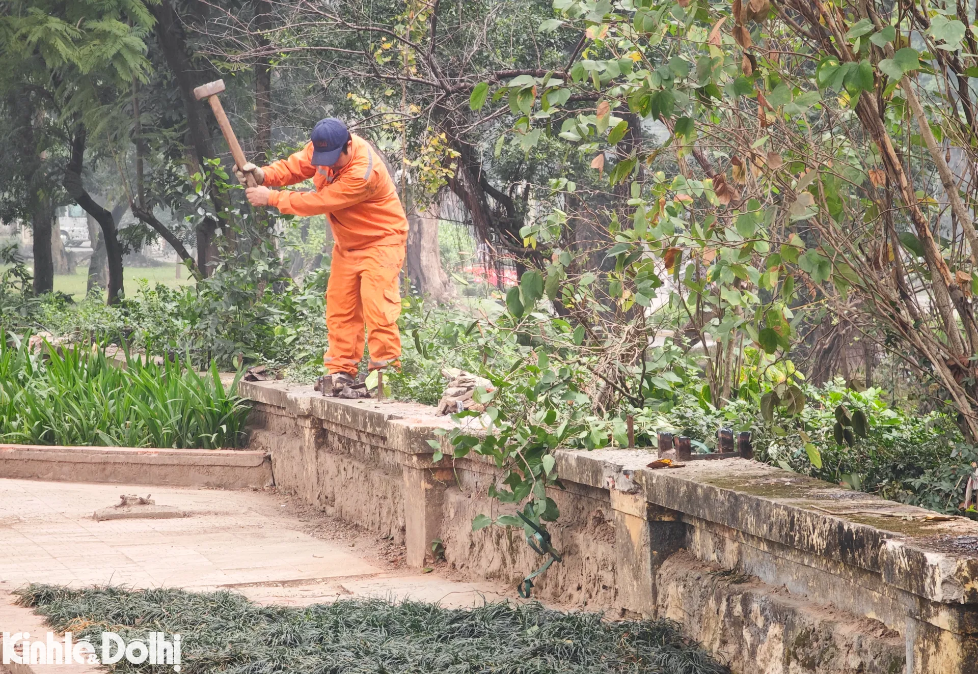 Kinhtedothi-Những ngày giữa tháng Tư ngay trước thềm kỷ niệm 50 năm Ngày Giải phóng miền Nam thống nhất đất nước, tất bật và hối hả là không khí thấy rõ trên công trường thi công dự án “Cải tạo, chỉnh trang hè phố Lê Duẩn, cổng, hàng rào Công viên Thống Nhất” (đoạn từ phố Trần Nhân Tông tới phố Đại Cồ Việt, quận Hai Bà Trưng).