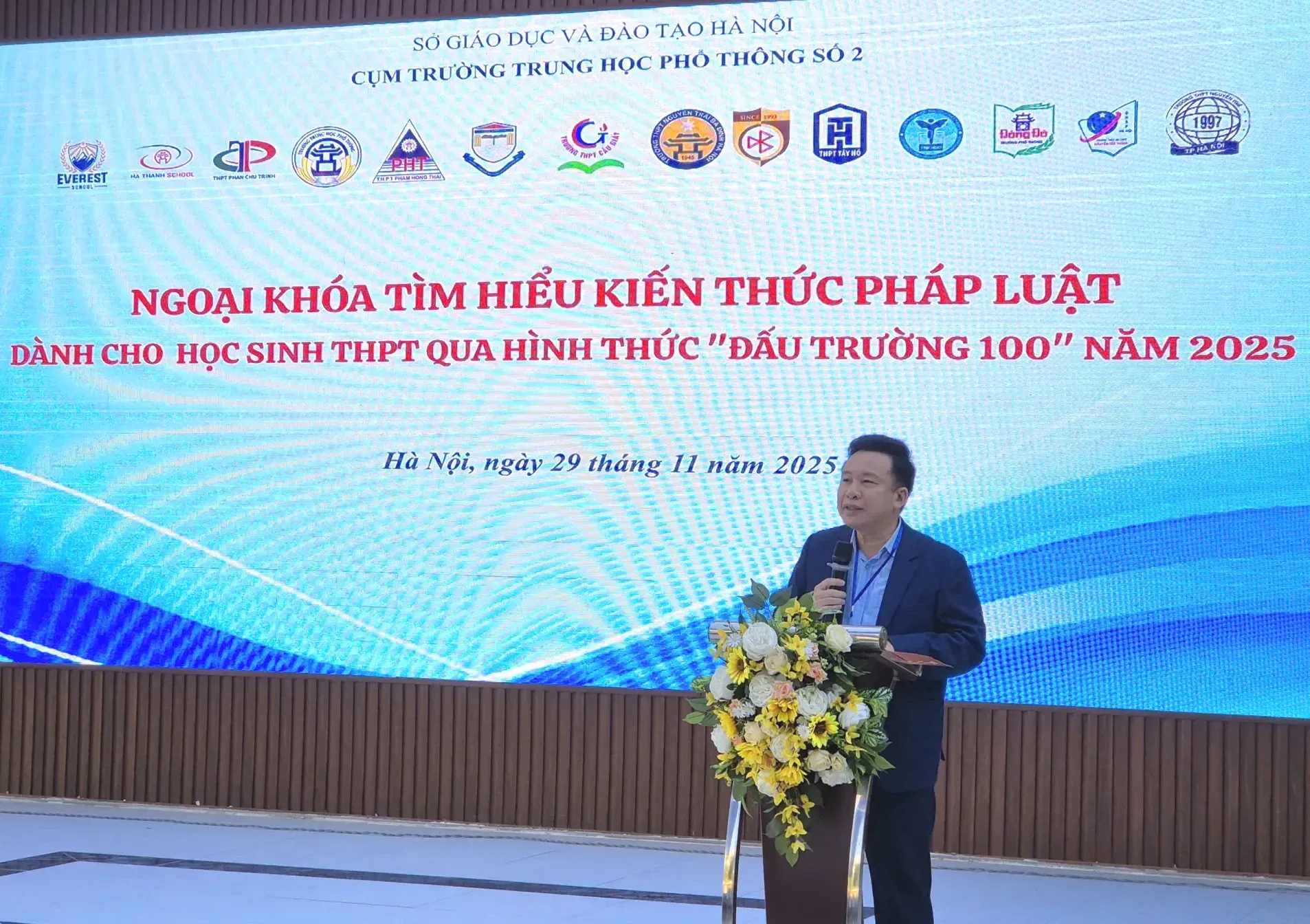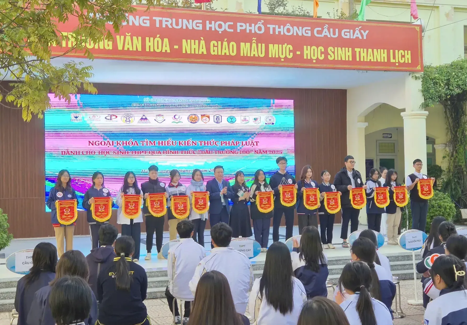 Phát biểu khai mạc, nhà giáo Tô Văn Nhân – Hiệu trưởng Trường THPT Cầu Giấy cho biết: “Pháp luật là nền tảng để xây dựng một xã hội văn minh; là trụ cột để bảo vệ công bằng, lẽ phải và quyền con người. Việc giáo dục pháp luật cho học sinh không chỉ giúp các em tìm hiểu các quy định mà sâu sa hơn, còn giúp các em biết sống đúng – sống đẹp – sống có trách nhiệm trong mỗi lựa chọn của mình”.