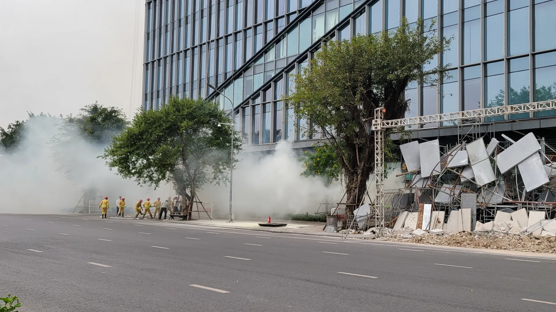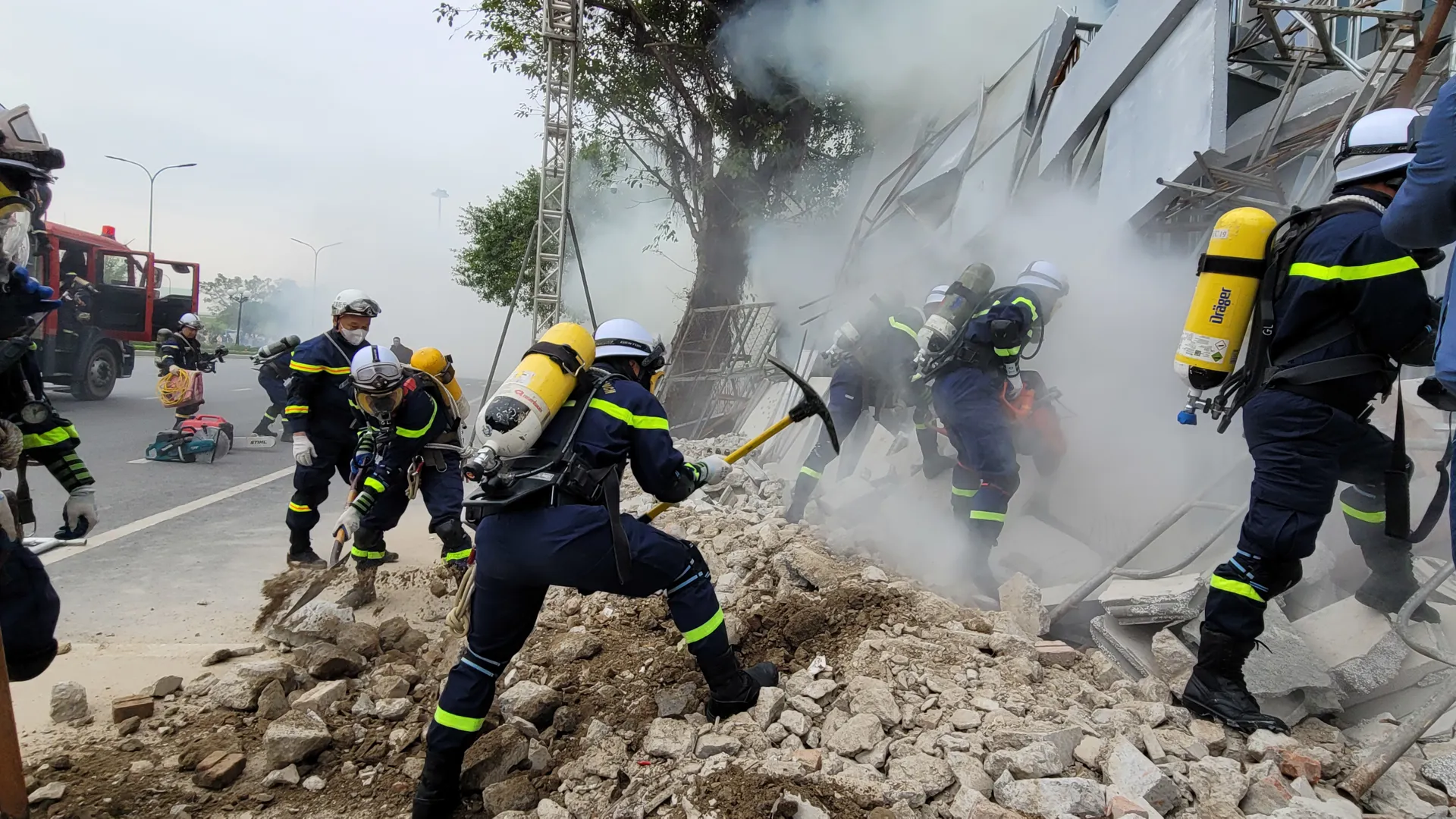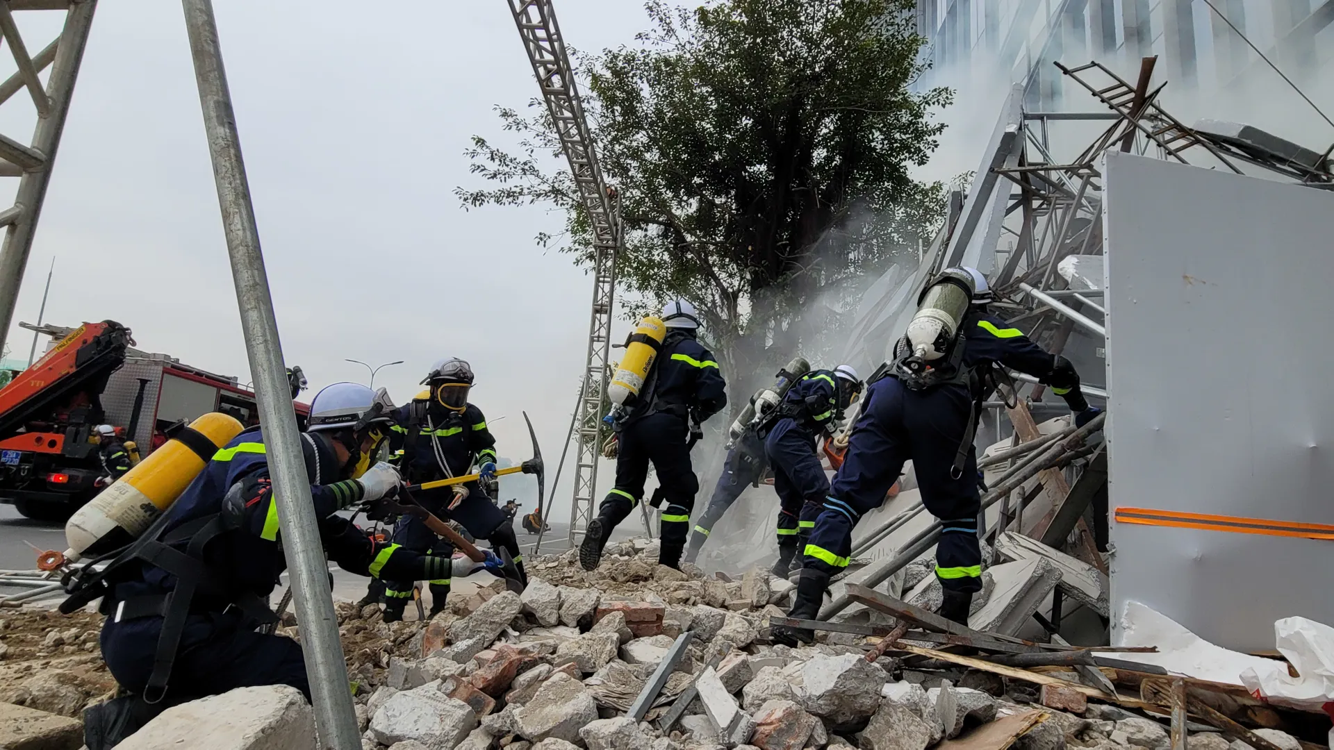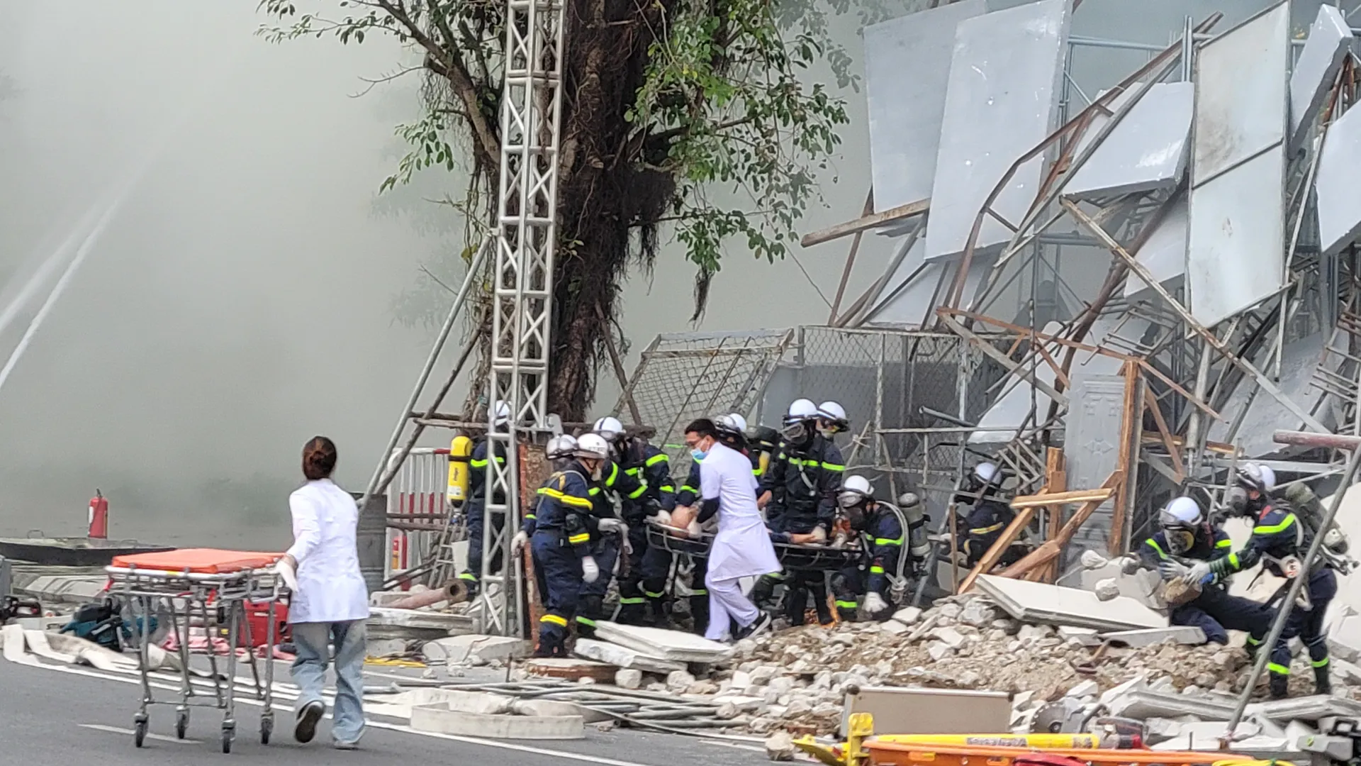 Tình huống sự cố cháy, đổ sập xảy ra tại tòa nhà.