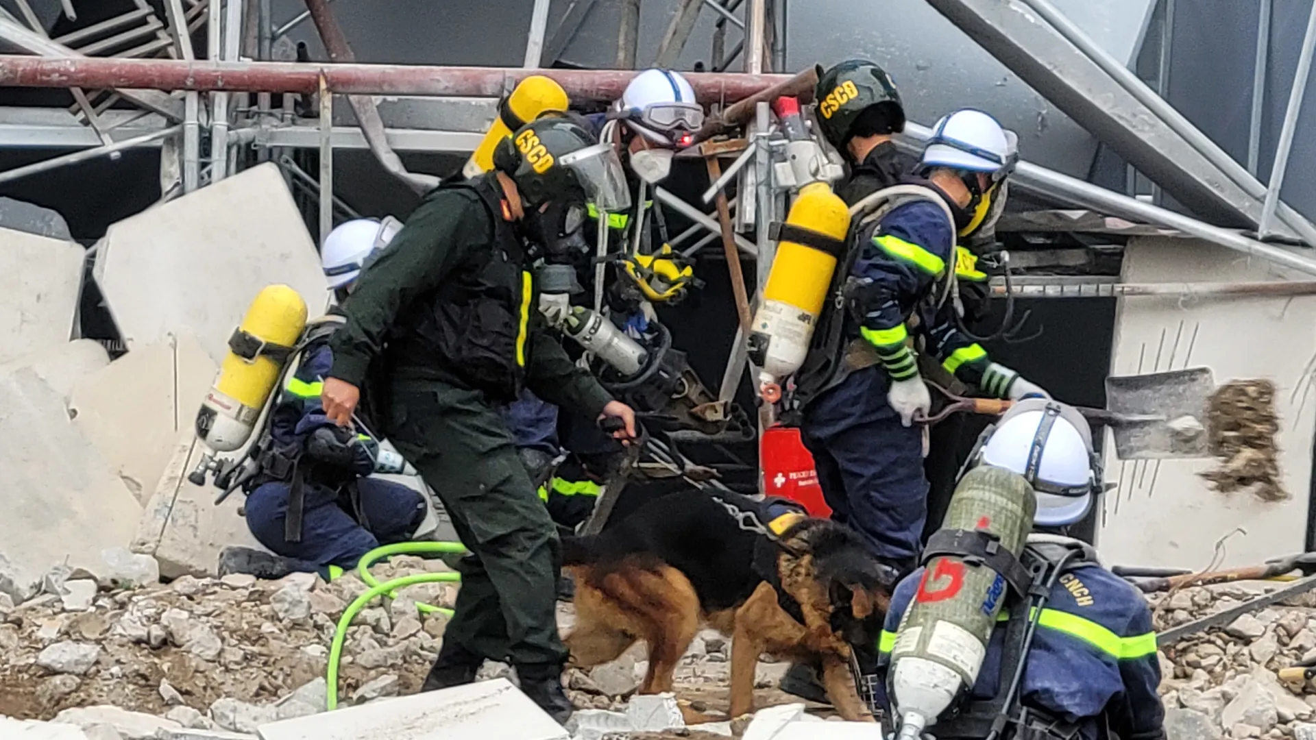 Đưa cảnh khuyển vào hiện trường tìm kiếm nạn nhân.