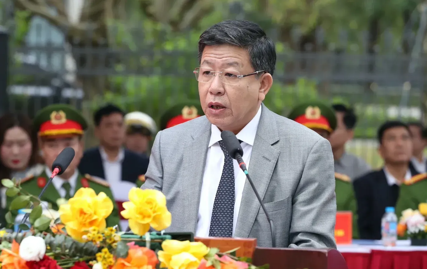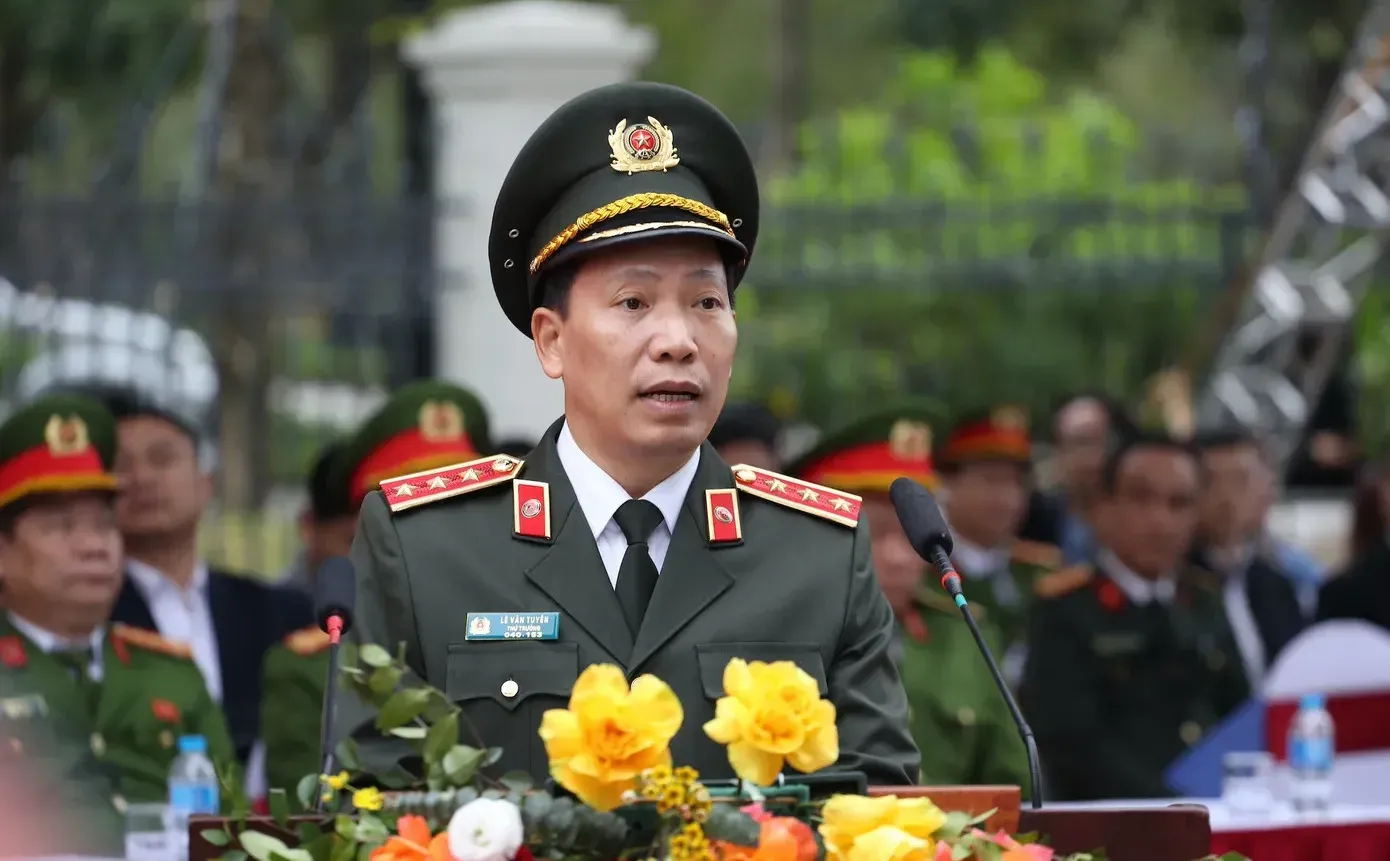 Thượng tướng Lê Văn Tuyến, Thứ trưởng Bộ Công an phát biểu tại buổi diễn tập.
