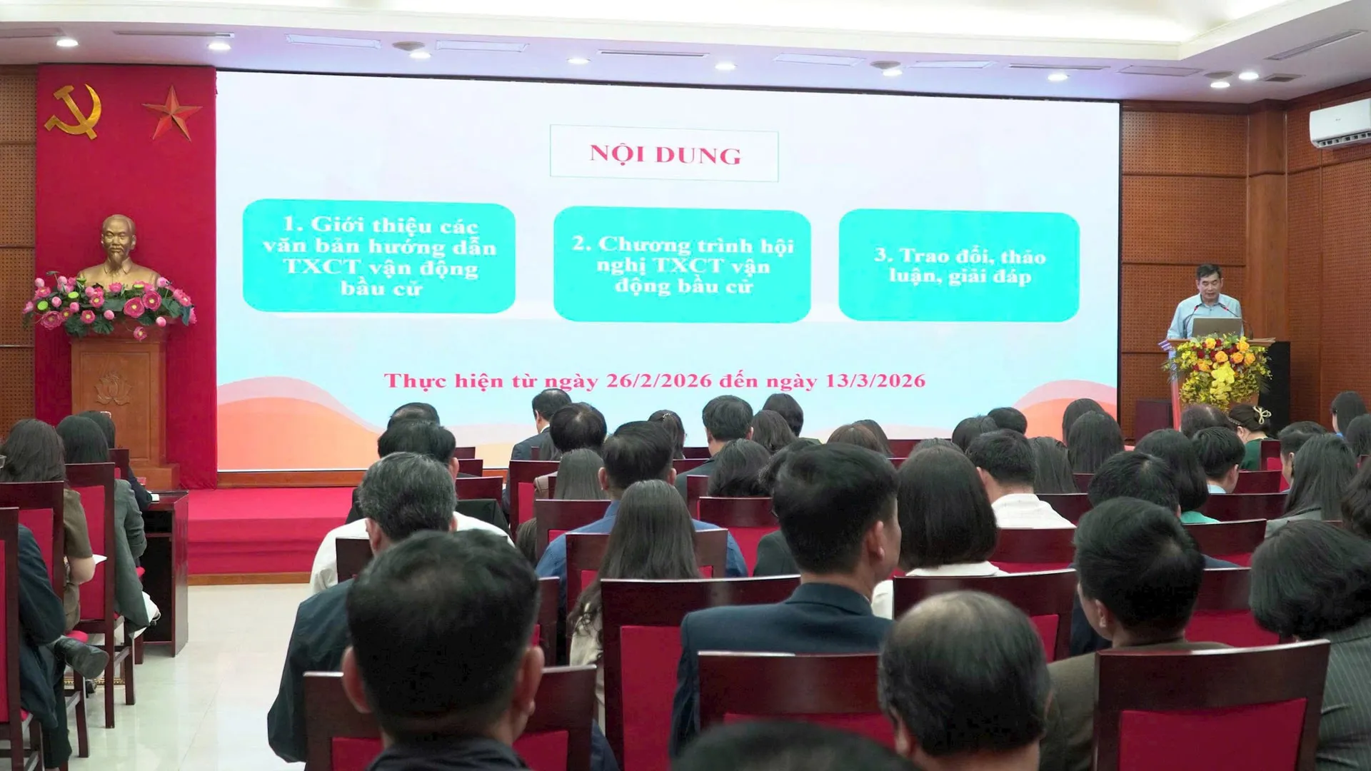 Tại Hội nghị, Trưởng ban Dân chủ - Giám sát và Phản biện xã hội (Ủy ban MTTQ Việt Nam TP Hà Nội) Phạm Ngọc Quỳnh đã giới thiệu nội dung cốt lõi các văn bản như: Luật Bầu cử đại biểu Quốc hội và đại biểu HĐND năm 2015 (sửa đổi bổ sung năm 2025); Thông tri số 05/TT-MTTW-BTT ngày 4/11/2025 của Ủy ban T.Ư MTTQ Việt Nam về Hướng dẫn MTTQ Việt Nam tham gia công tác bầu cử đại biểu Quốc hội khóa XVI và đại biểu HĐND các cấp, nhiệm kỳ 2026-2031; Kế hoạch số 40/KH-MTTQ-BTT ngày 12/2/2026 của Ban Thường trực Ủy ban MTTQ Việt Nam TP Hà Nội về việc tổ chức hội nghị cử tri để người ứng cử vận động bầu cử; Thông báo số 234/TB-MTTQ-BTT ngày 24/2/2026 về dự kiến lịch tổ chức hội nghị tiếp xúc cử tri vận động bầu cử đối với ứng cử viên đại biểu Quốc hội khóa XVI và đại biểu HĐND TP nhiệm kỳ 2026-2031...